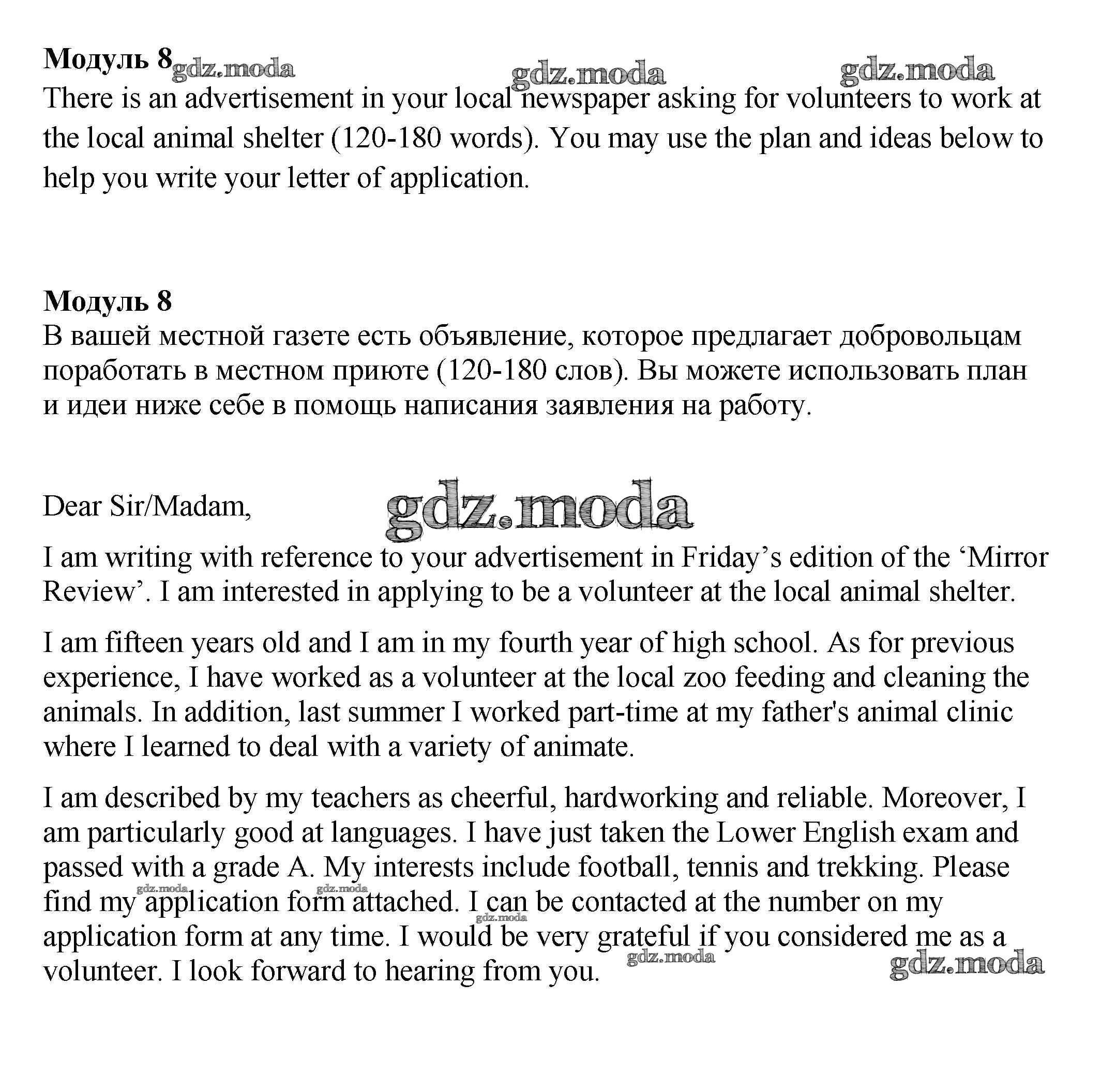 ГДЗ решение к заданию № Module 8 Английский язык 9 класс контрольные задания Spotlight Ваулина Просвещение 2018 ФГОС бесплатно на гдз.мода!