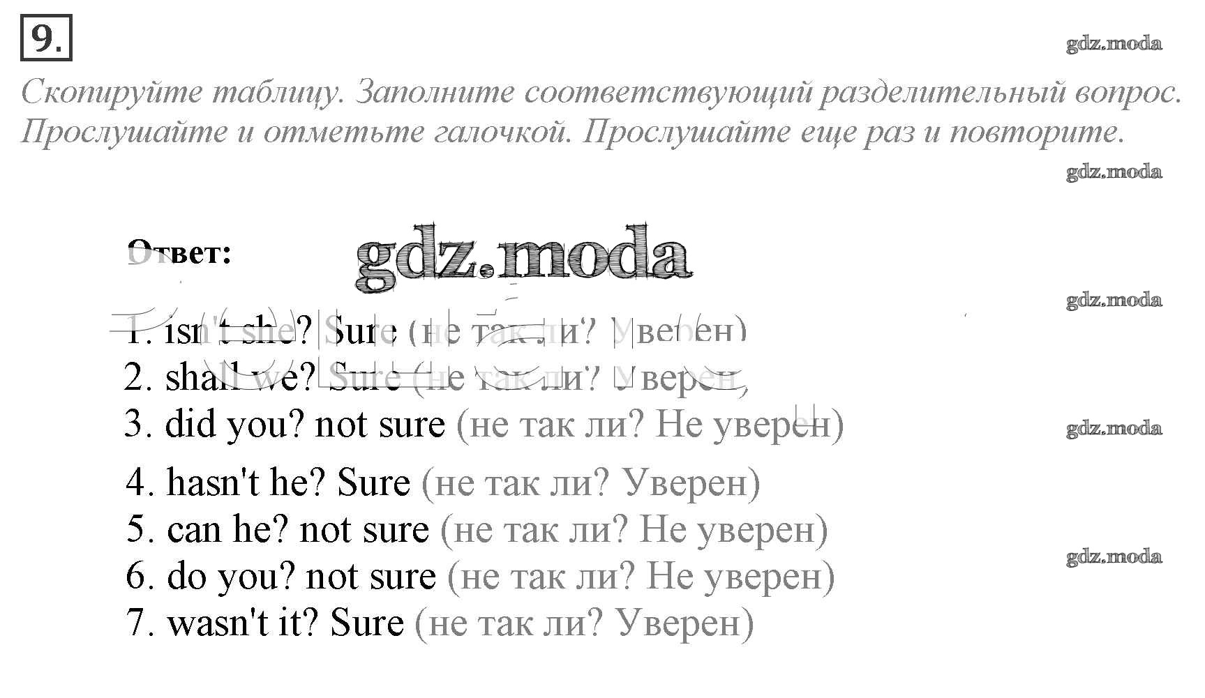 ГДЗ решение к заданию № 9 Английский язык 9 класс Spotlight Ваулина Просвещение 2010 ФГОС бесплатно на гдз.мода!
