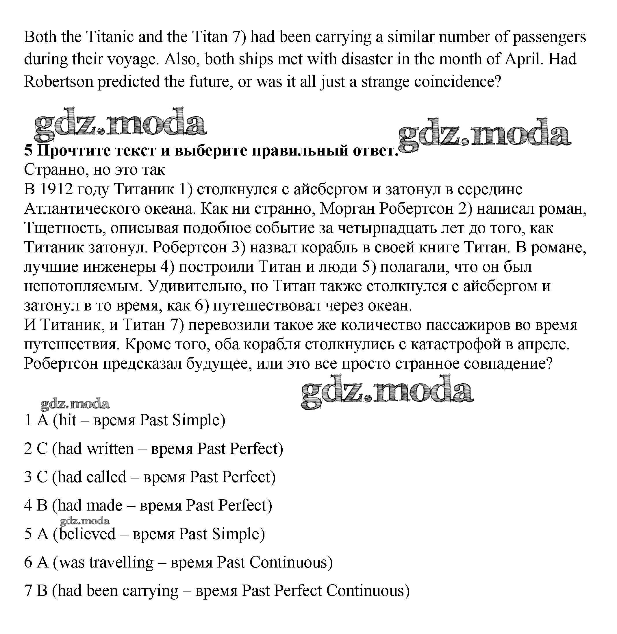 ОТВЕТ на задание № 5 Рабочая тетрадь по Английскому языку 9 класс Ваулина
