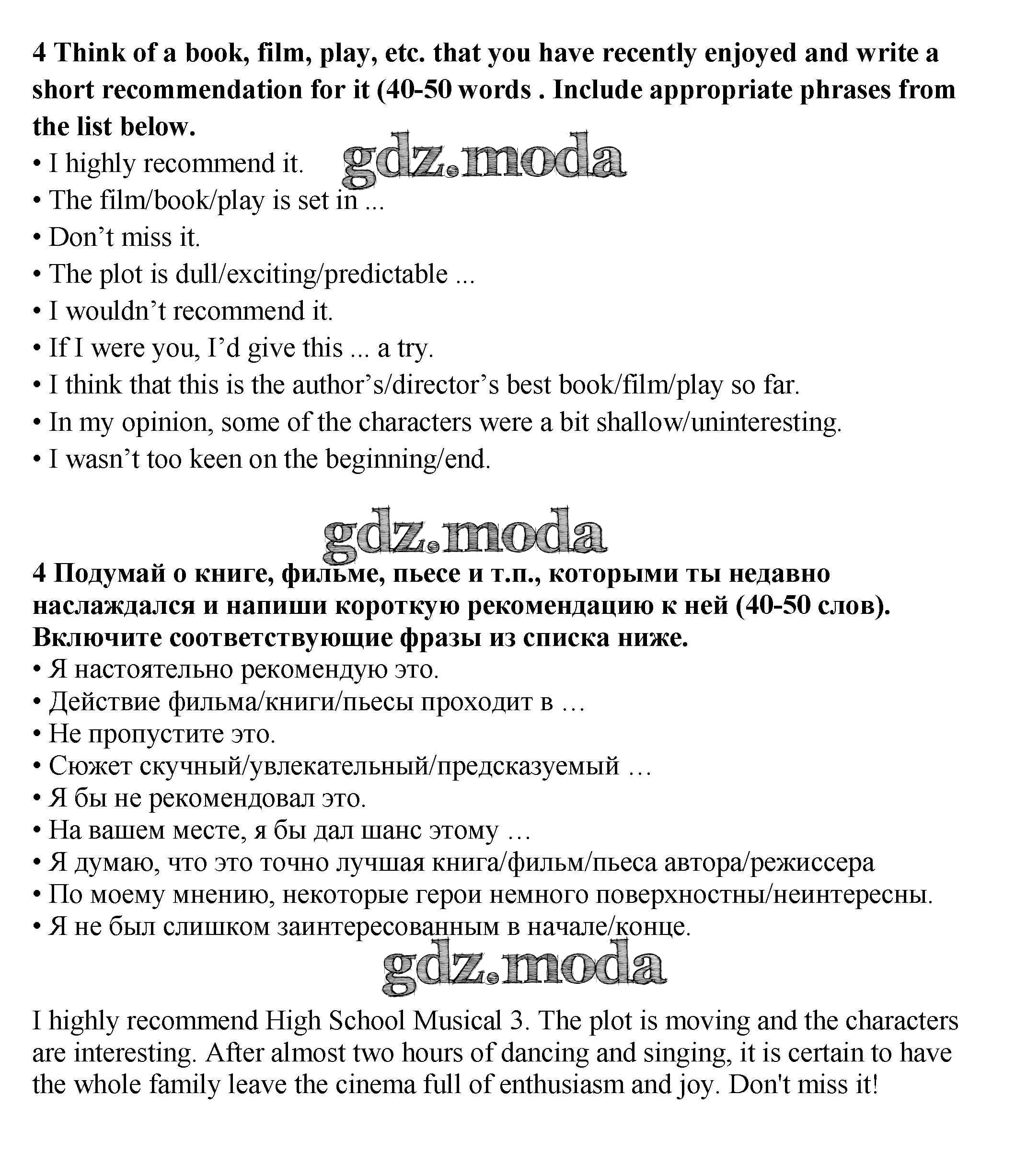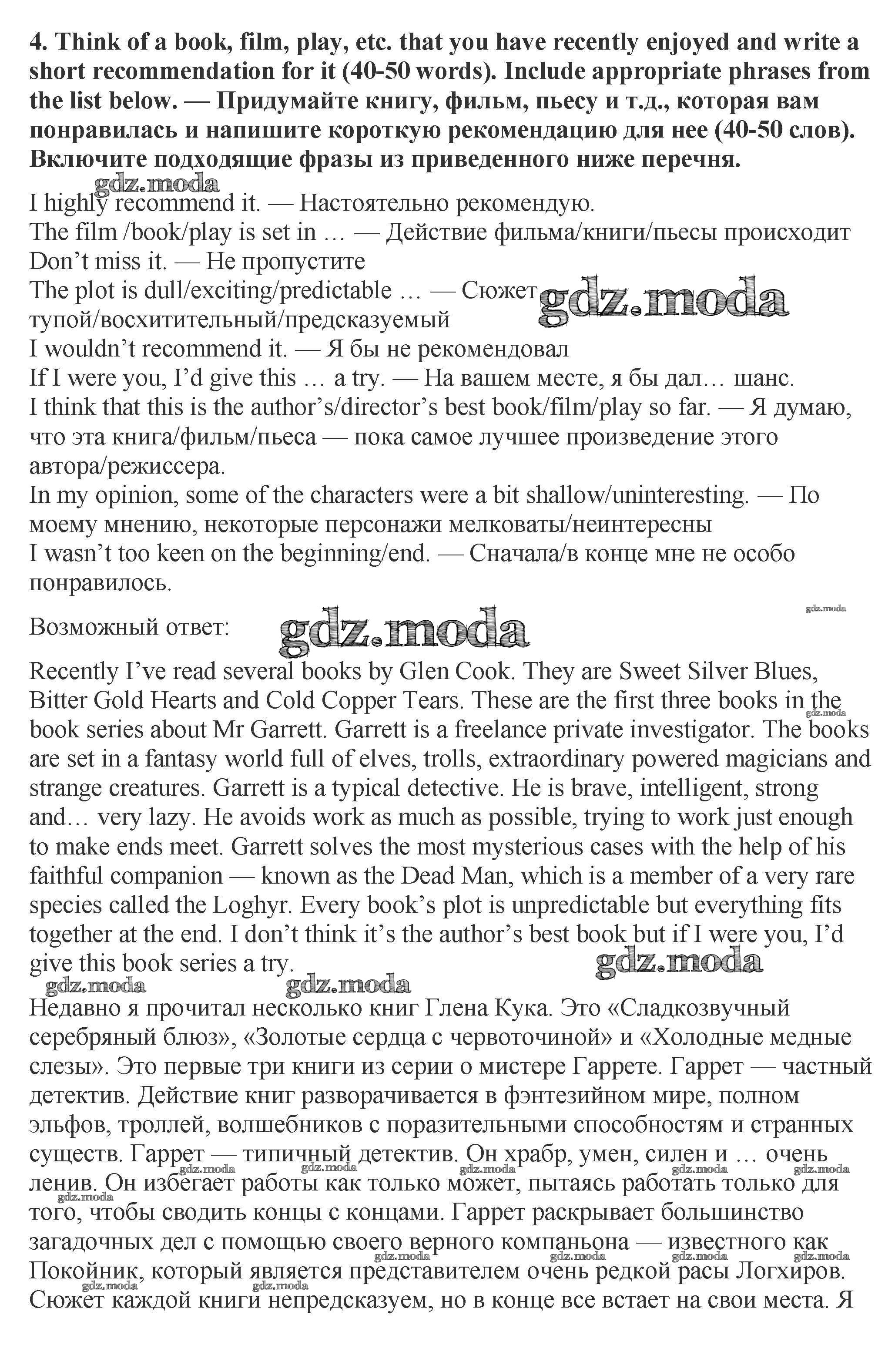 ОТВЕТ на задание № 4 Рабочая тетрадь по Английскому языку 9 класс Ваулина