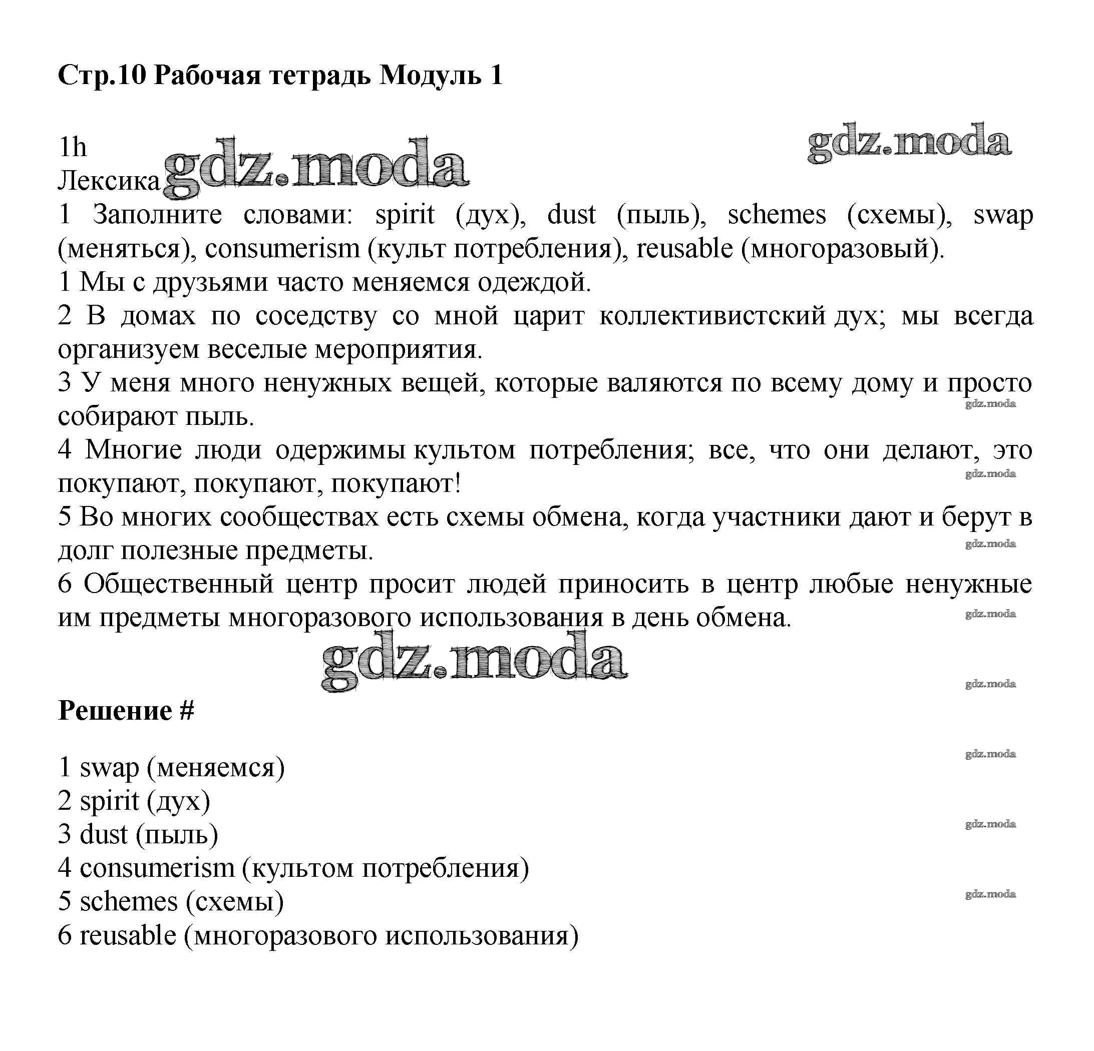 ГДЗ решение к заданию № стр.10 Английский язык 9 класс рабочая тетрадь Starlight Баранова К.М. Просвещение 2017 Углубленный уровень ФГОС бесплатно на гдз.мода!