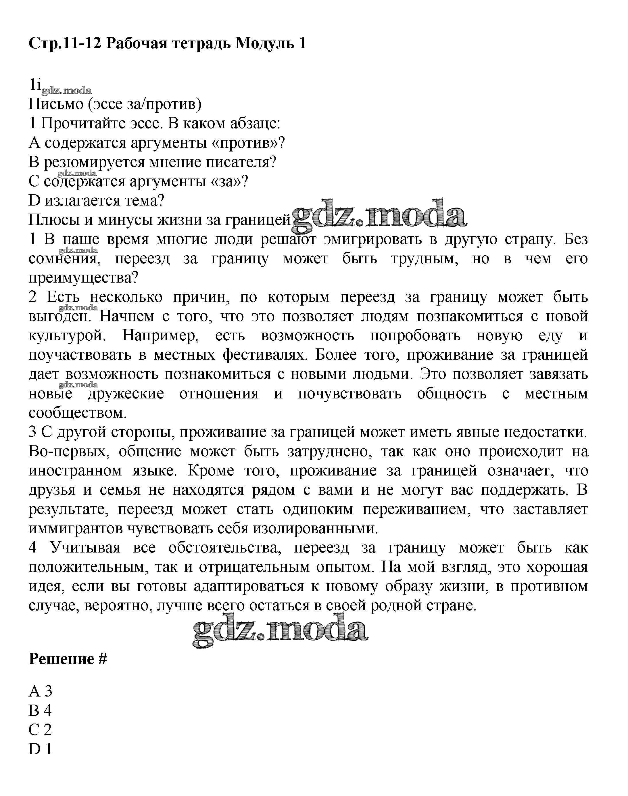 ГДЗ решение к заданию № стр.11-12 Английский язык 9 класс рабочая тетрадь Starlight Баранова К.М. Просвещение 2017 Углубленный уровень ФГОС бесплатно на гдз.мода!
