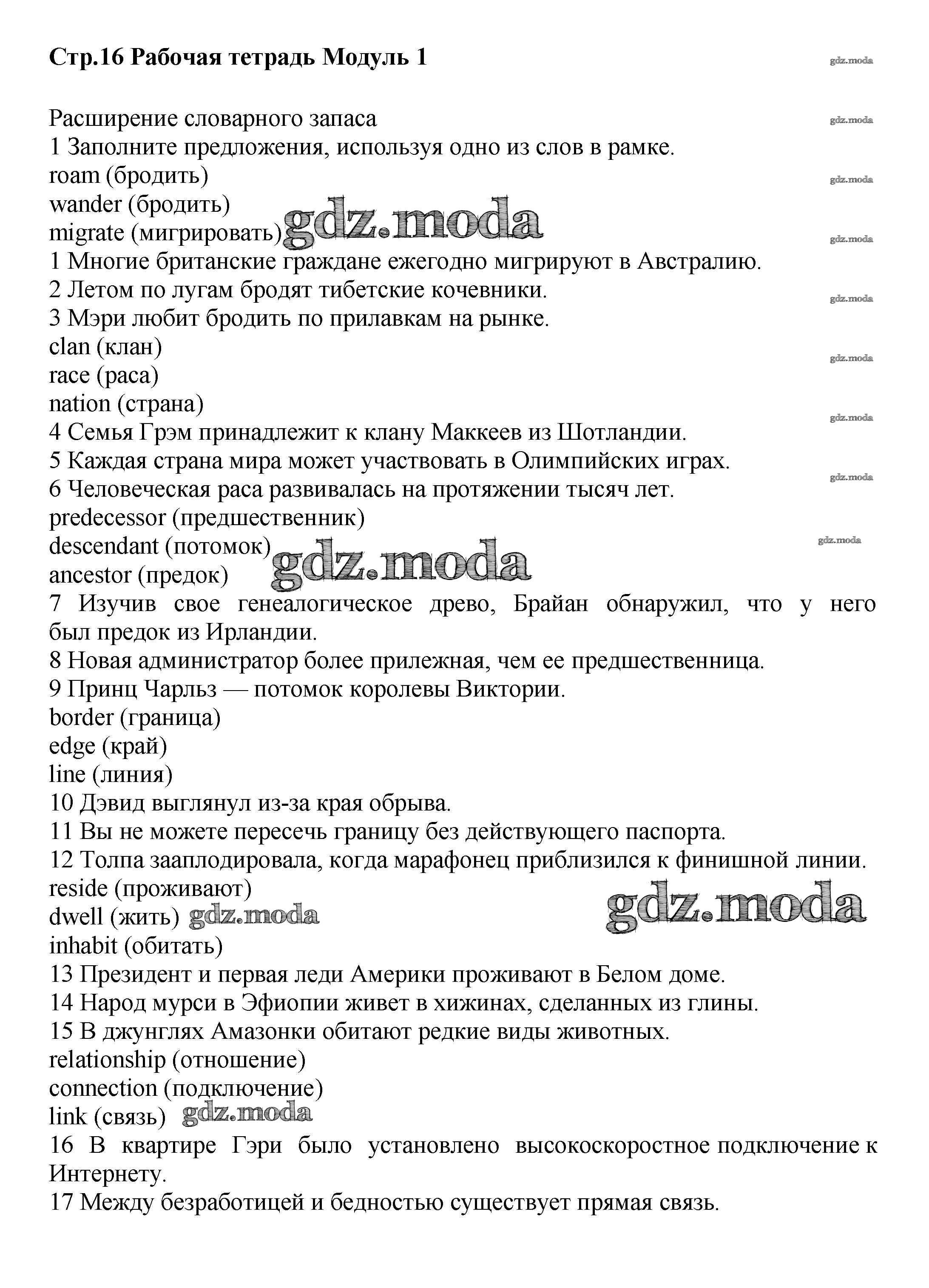 ГДЗ решение к заданию № стр.16 Английский язык 9 класс рабочая тетрадь Starlight Баранова К.М. Просвещение 2017 Углубленный уровень ФГОС бесплатно на гдз.мода!