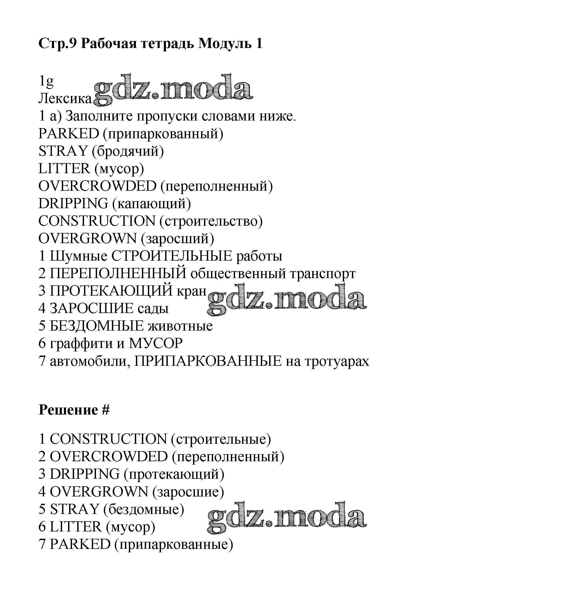 ГДЗ решение к заданию № стр.9 Английский язык 9 класс рабочая тетрадь Starlight Баранова К.М. Просвещение 2017 Углубленный уровень ФГОС бесплатно на гдз.мода!