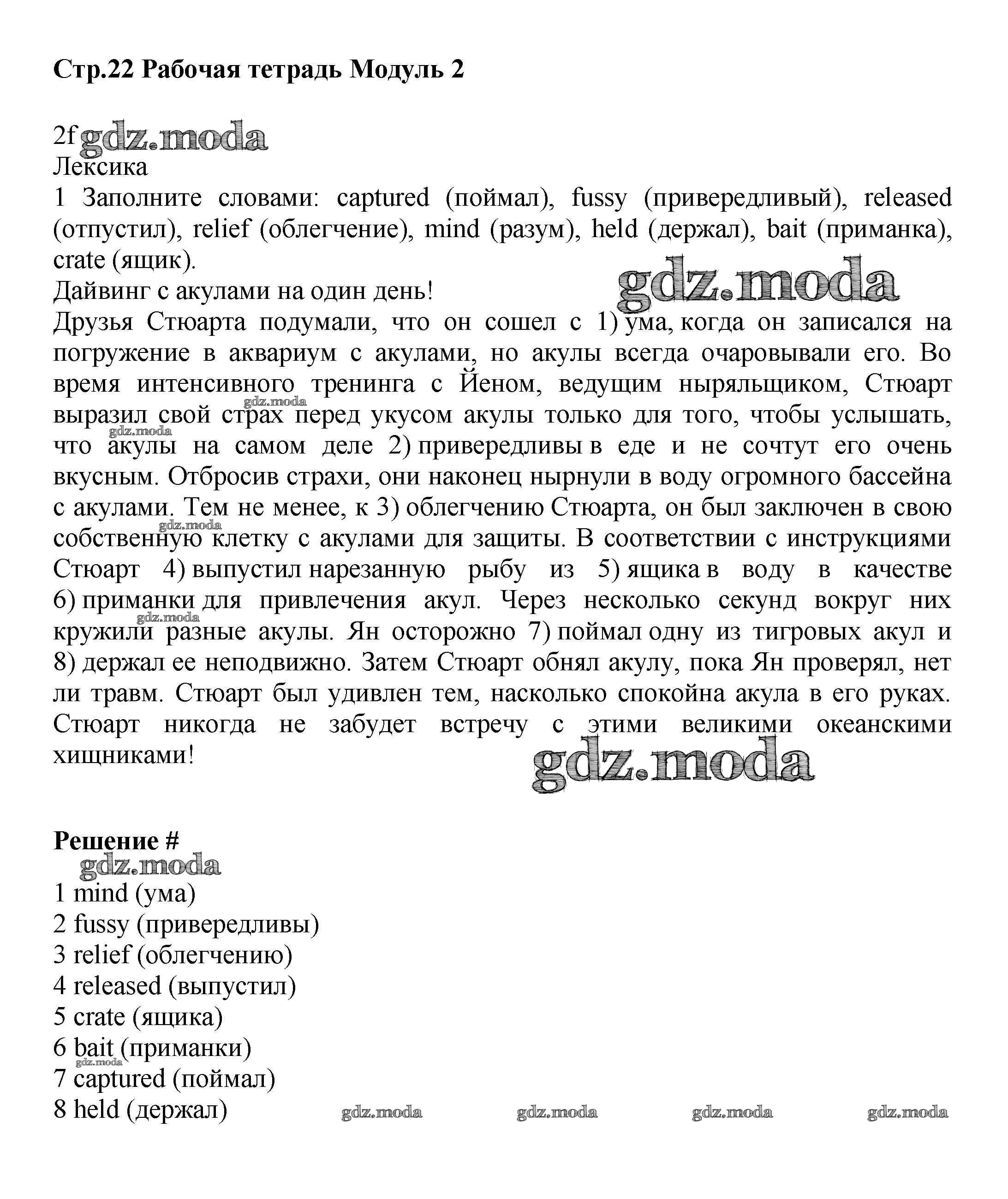 ГДЗ решение к заданию № стр.22 Английский язык 9 класс рабочая тетрадь Starlight Баранова К.М. Просвещение 2017 Углубленный уровень ФГОС бесплатно на гдз.мода!