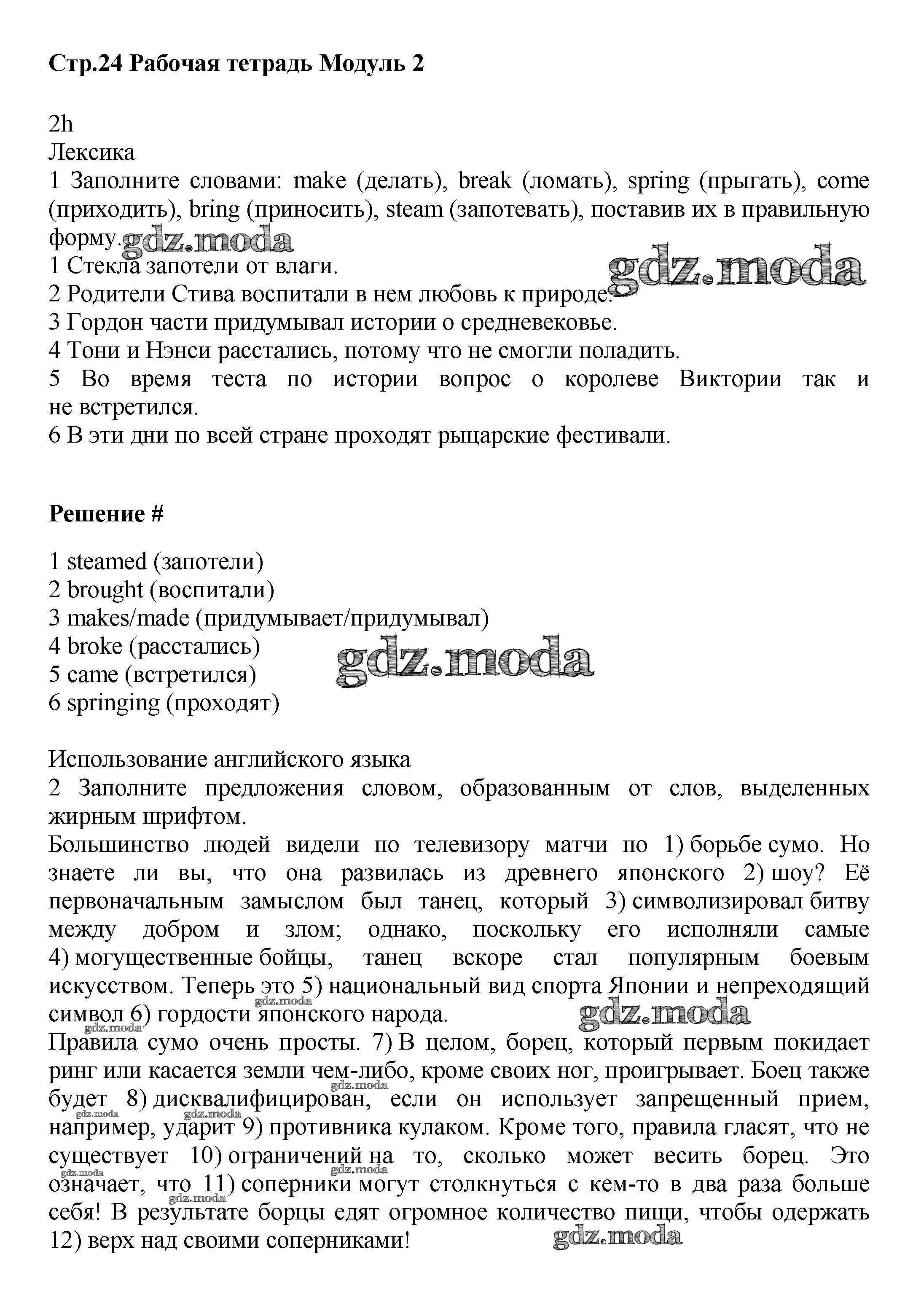 ГДЗ решение к заданию № стр.24 Английский язык 9 класс рабочая тетрадь Starlight Баранова К.М. Просвещение 2017 Углубленный уровень ФГОС бесплатно на гдз.мода!