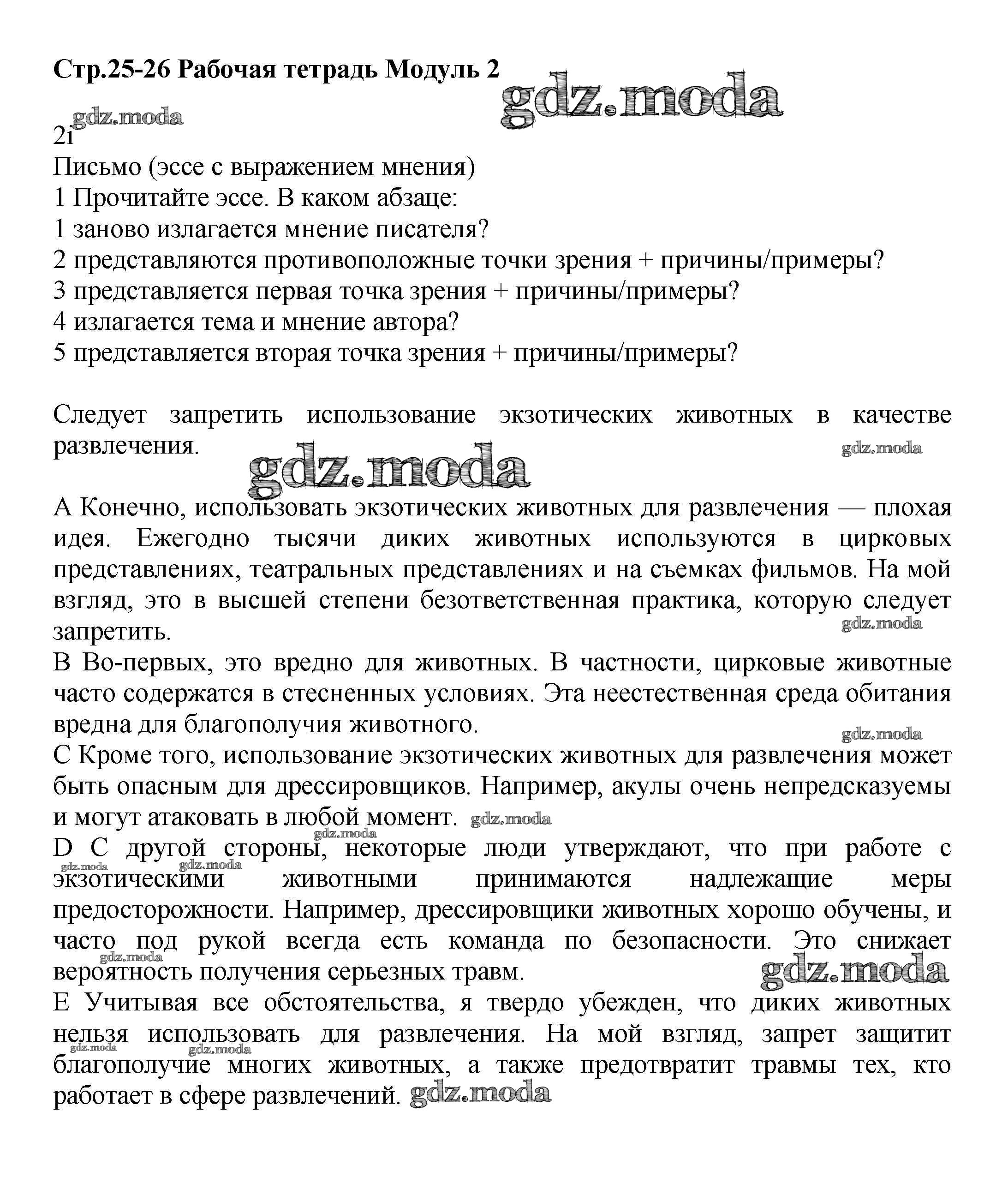 ОТВЕТ на задание № стр.25-26 Рабочая тетрадь по Английскому языку 9 класс Баранова Starlight Углубленный уровень