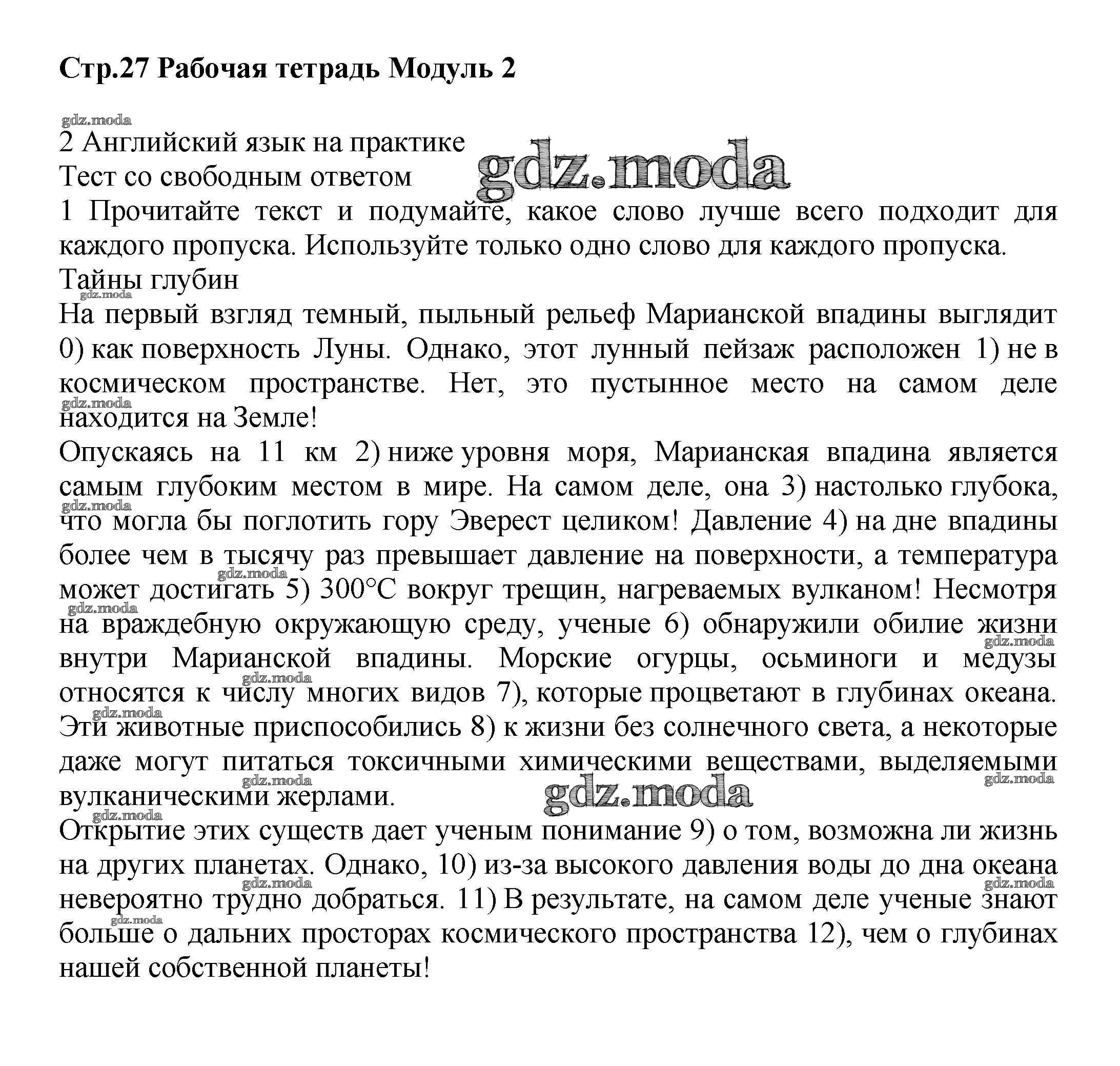 ГДЗ решение к заданию № стр.27 Английский язык 9 класс рабочая тетрадь Starlight Баранова К.М. Просвещение 2017 Углубленный уровень ФГОС бесплатно на гдз.мода!