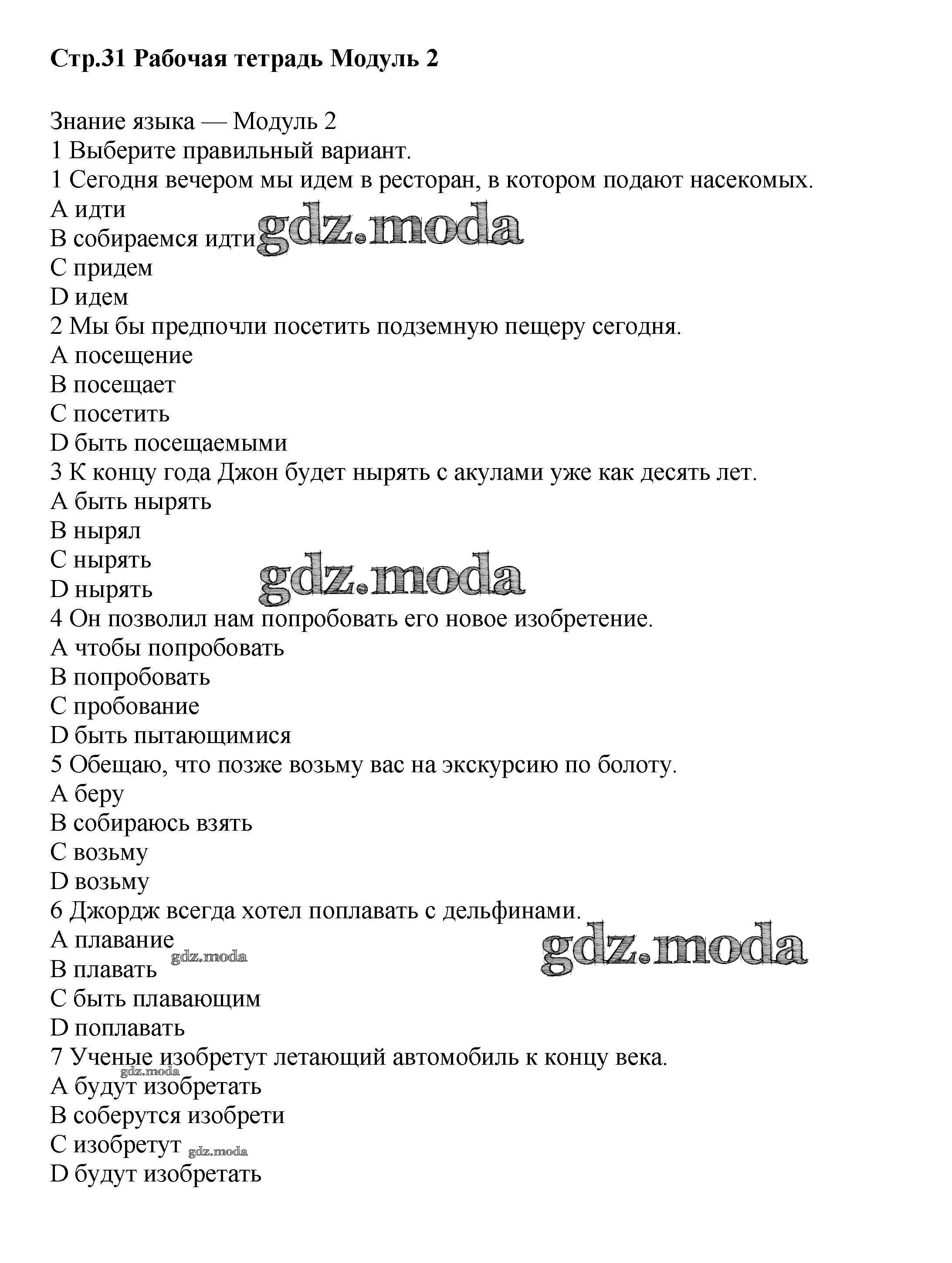 ГДЗ решение к заданию № стр.31 Английский язык 9 класс рабочая тетрадь Starlight Баранова К.М. Просвещение 2017 Углубленный уровень ФГОС бесплатно на гдз.мода!