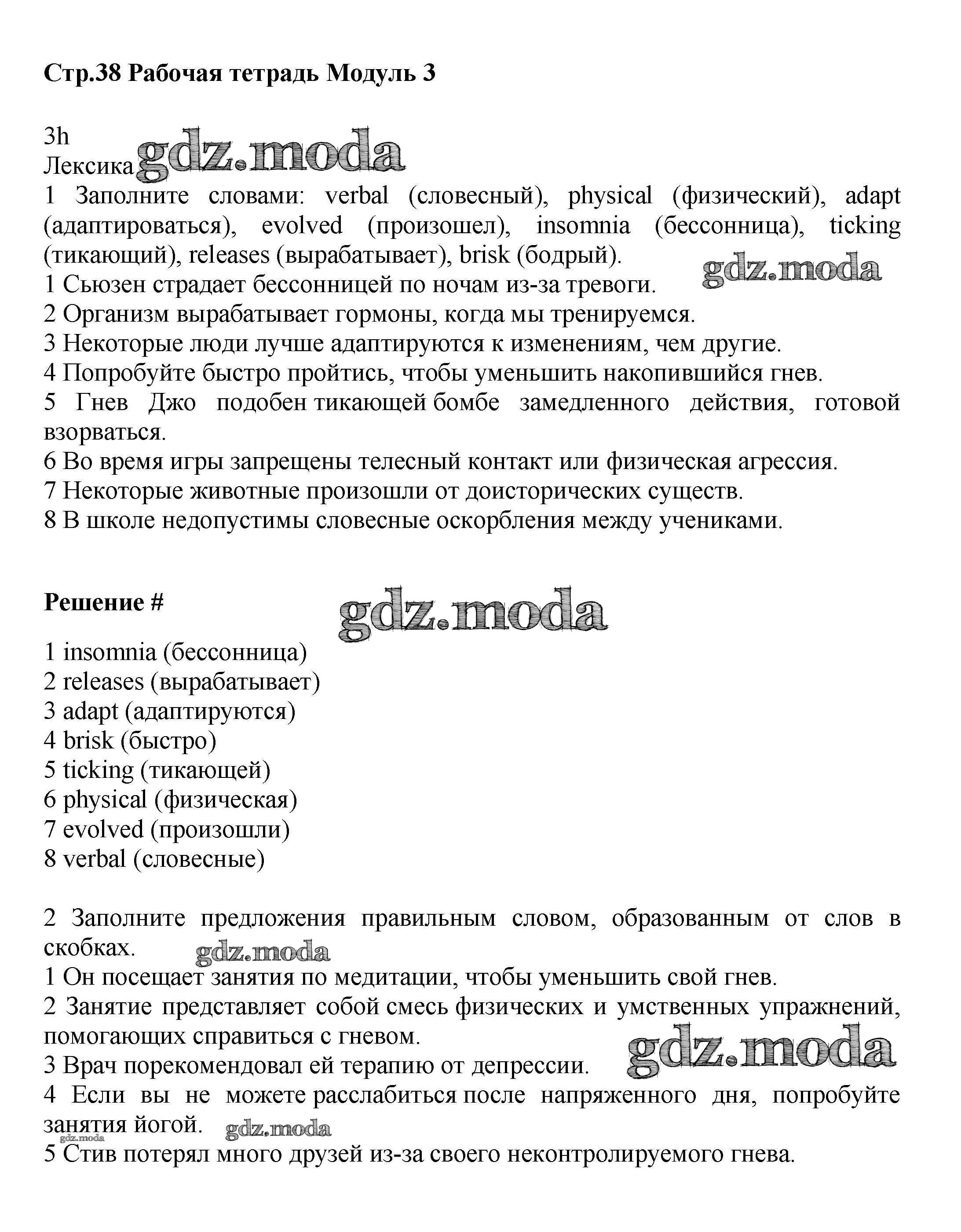 ГДЗ решение к заданию № стр.38 Английский язык 9 класс рабочая тетрадь Starlight Баранова К.М. Просвещение 2017 Углубленный уровень ФГОС бесплатно на гдз.мода!
