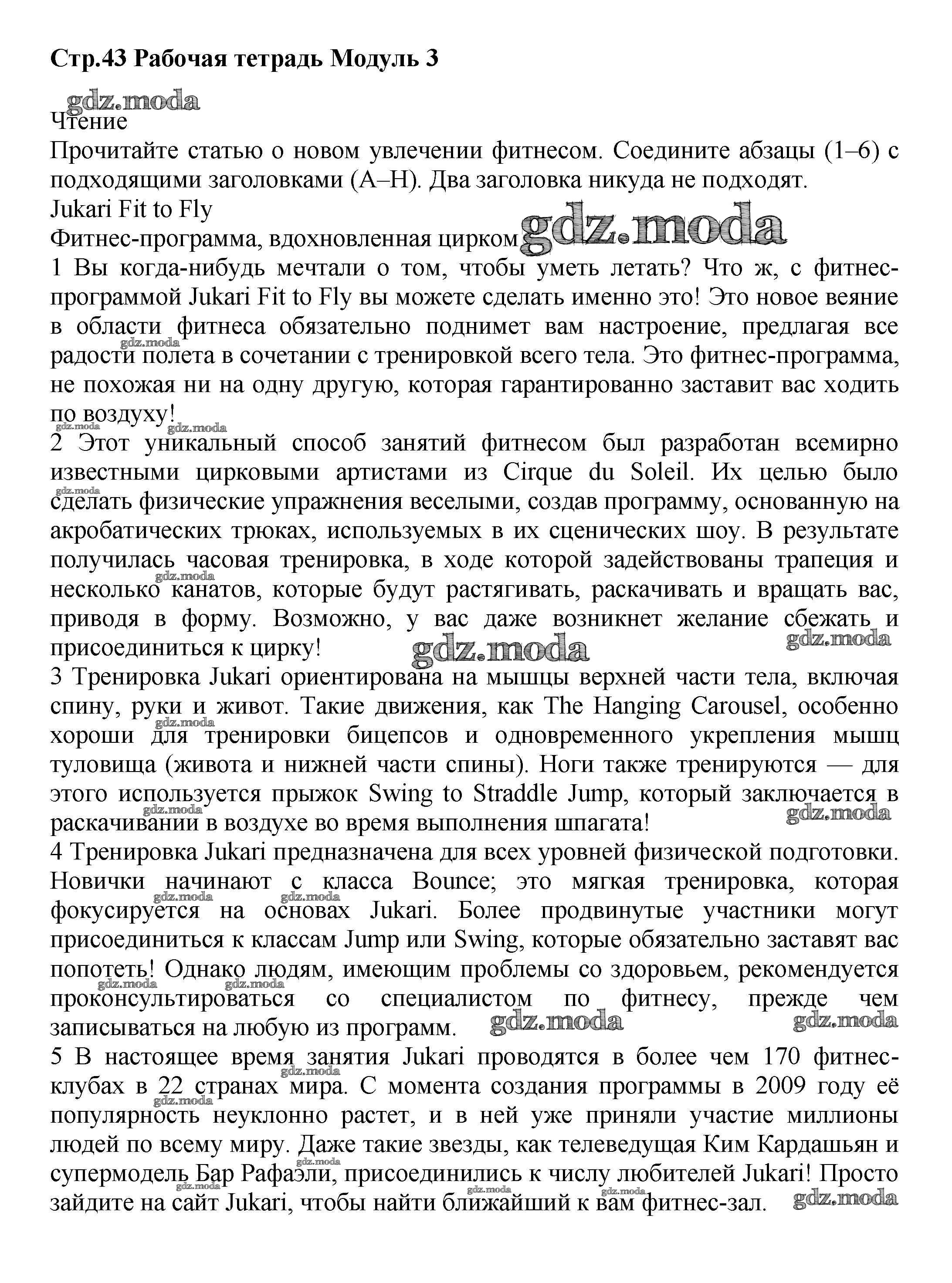 ГДЗ решение к заданию № стр.43 Английский язык 9 класс рабочая тетрадь Starlight Баранова К.М. Просвещение 2017 Углубленный уровень ФГОС бесплатно на гдз.мода!