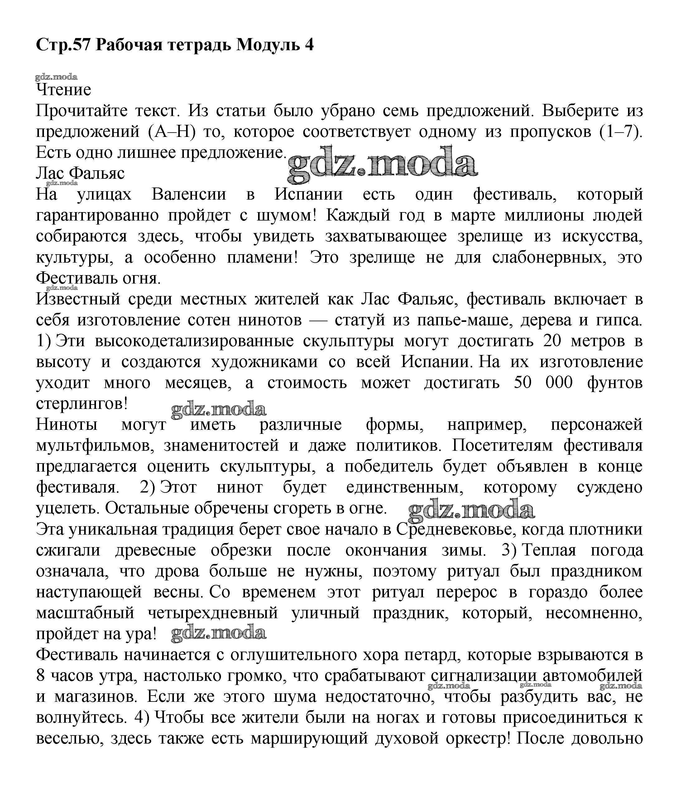 ГДЗ решение к заданию № стр.57 Английский язык 9 класс рабочая тетрадь Starlight Баранова К.М. Просвещение 2017 Углубленный уровень ФГОС бесплатно на гдз.мода!