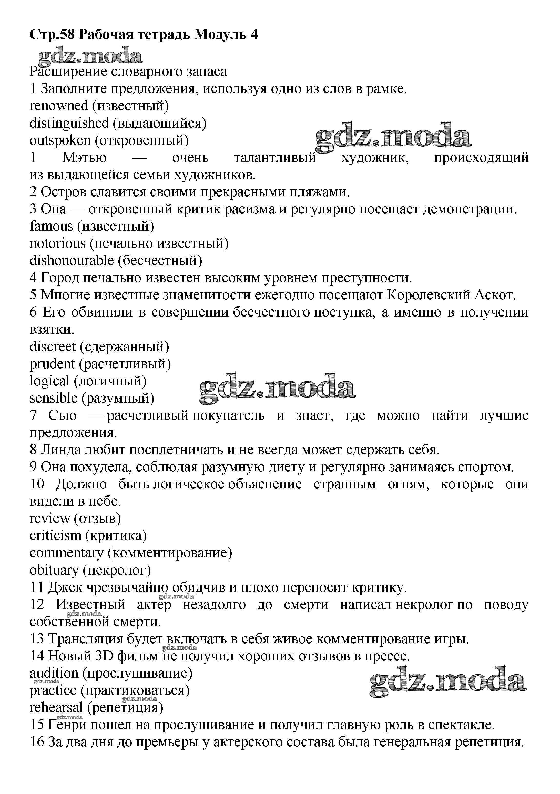ГДЗ решение к заданию № стр.58 Английский язык 9 класс рабочая тетрадь Starlight Баранова К.М. Просвещение 2017 Углубленный уровень ФГОС бесплатно на гдз.мода!