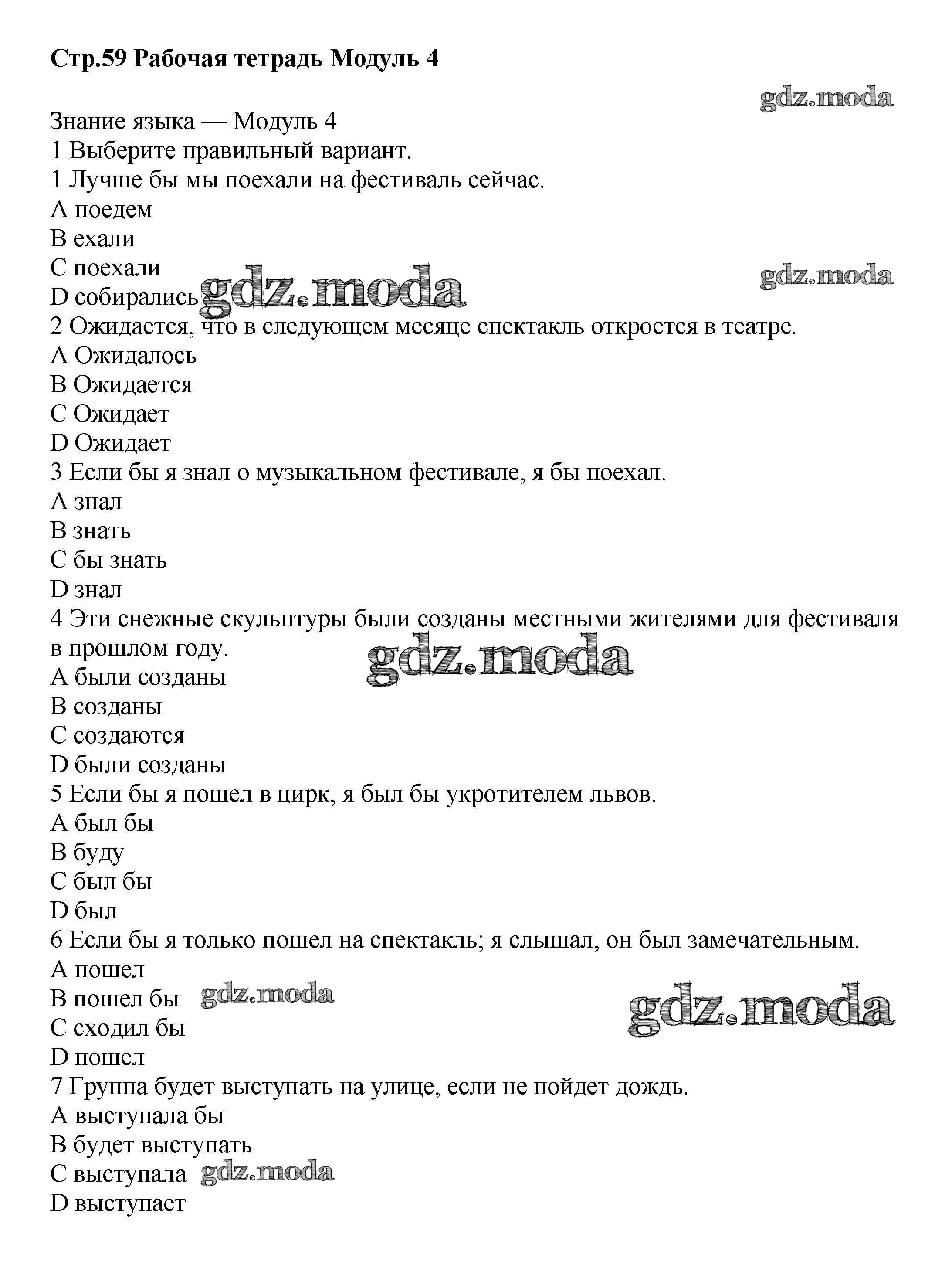 ГДЗ решение к заданию № стр.59 Английский язык 9 класс рабочая тетрадь Starlight Баранова К.М. Просвещение 2017 Углубленный уровень ФГОС бесплатно на гдз.мода!