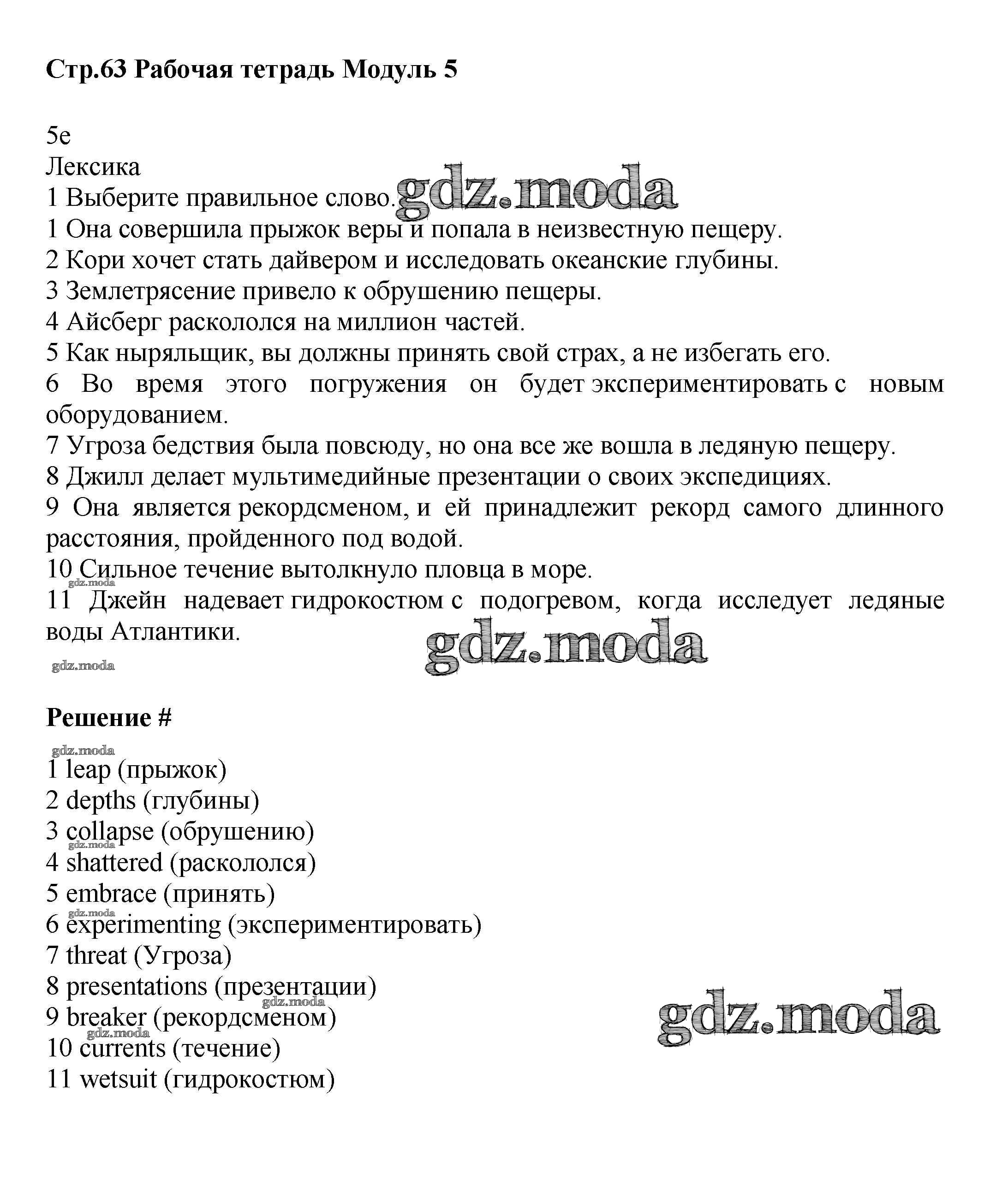 ГДЗ решение к заданию № стр.63 Английский язык 9 класс рабочая тетрадь Starlight Баранова К.М. Просвещение 2017 Углубленный уровень ФГОС бесплатно на гдз.мода!