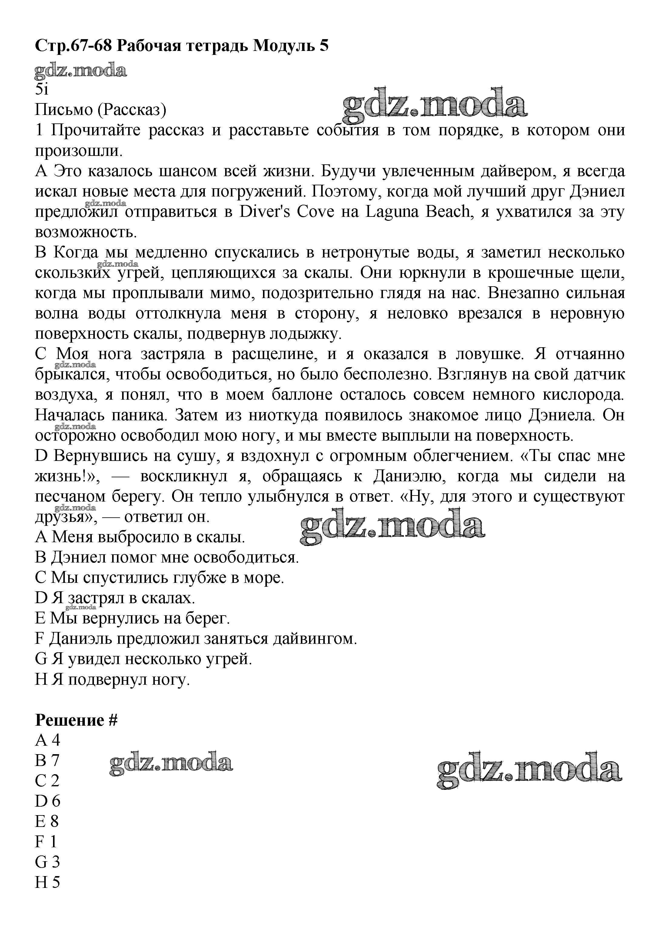 ГДЗ решение к заданию № стр.67-68 Английский язык 9 класс рабочая тетрадь Starlight Баранова К.М. Просвещение 2017 Углубленный уровень ФГОС бесплатно на гдз.мода!