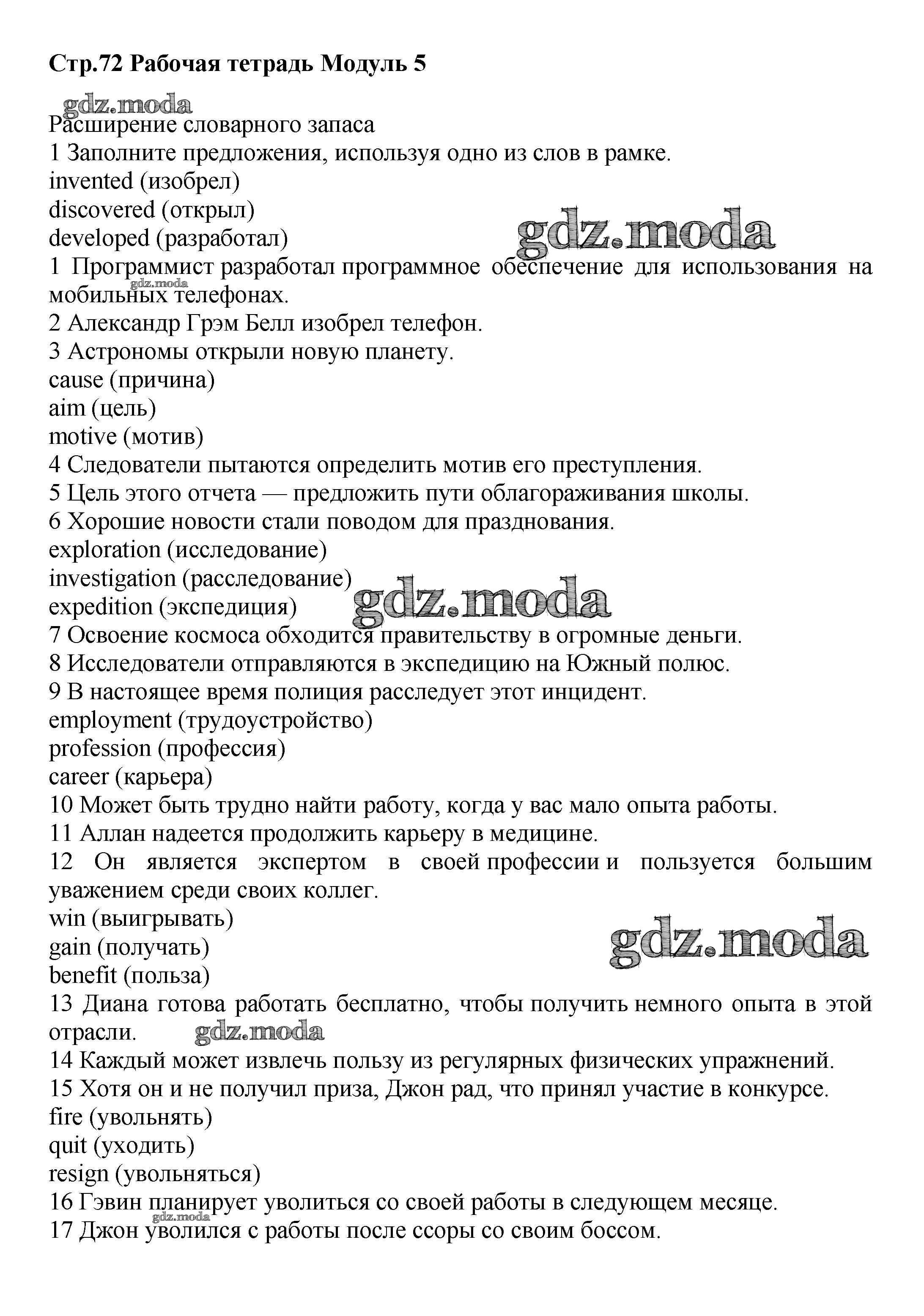 ГДЗ решение к заданию № стр.72 Английский язык 9 класс рабочая тетрадь Starlight Баранова К.М. Просвещение 2017 Углубленный уровень ФГОС бесплатно на гдз.мода!