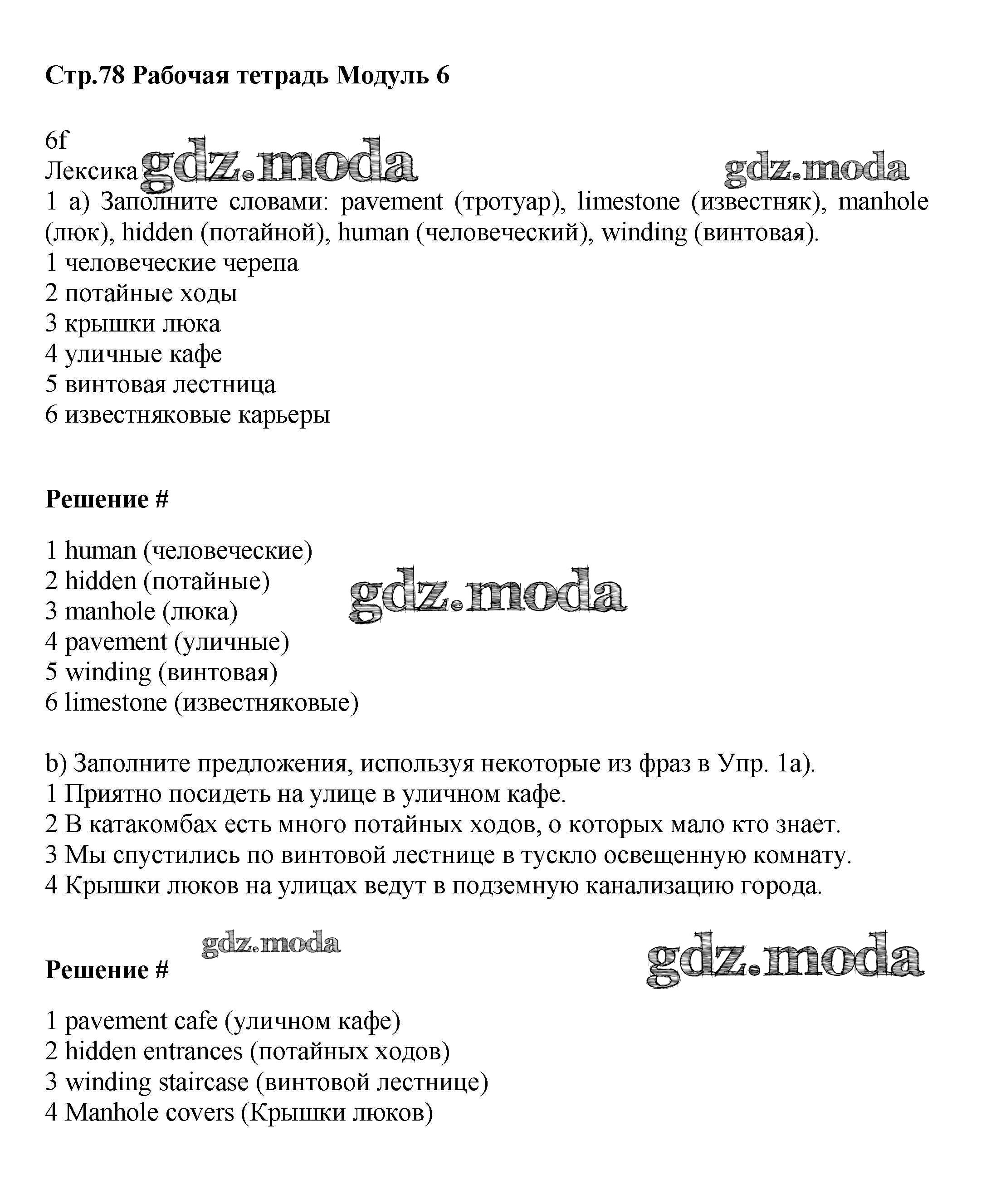 ГДЗ решение к заданию № стр.78 Английский язык 9 класс рабочая тетрадь Starlight Баранова К.М. Просвещение 2017 Углубленный уровень ФГОС бесплатно на гдз.мода!