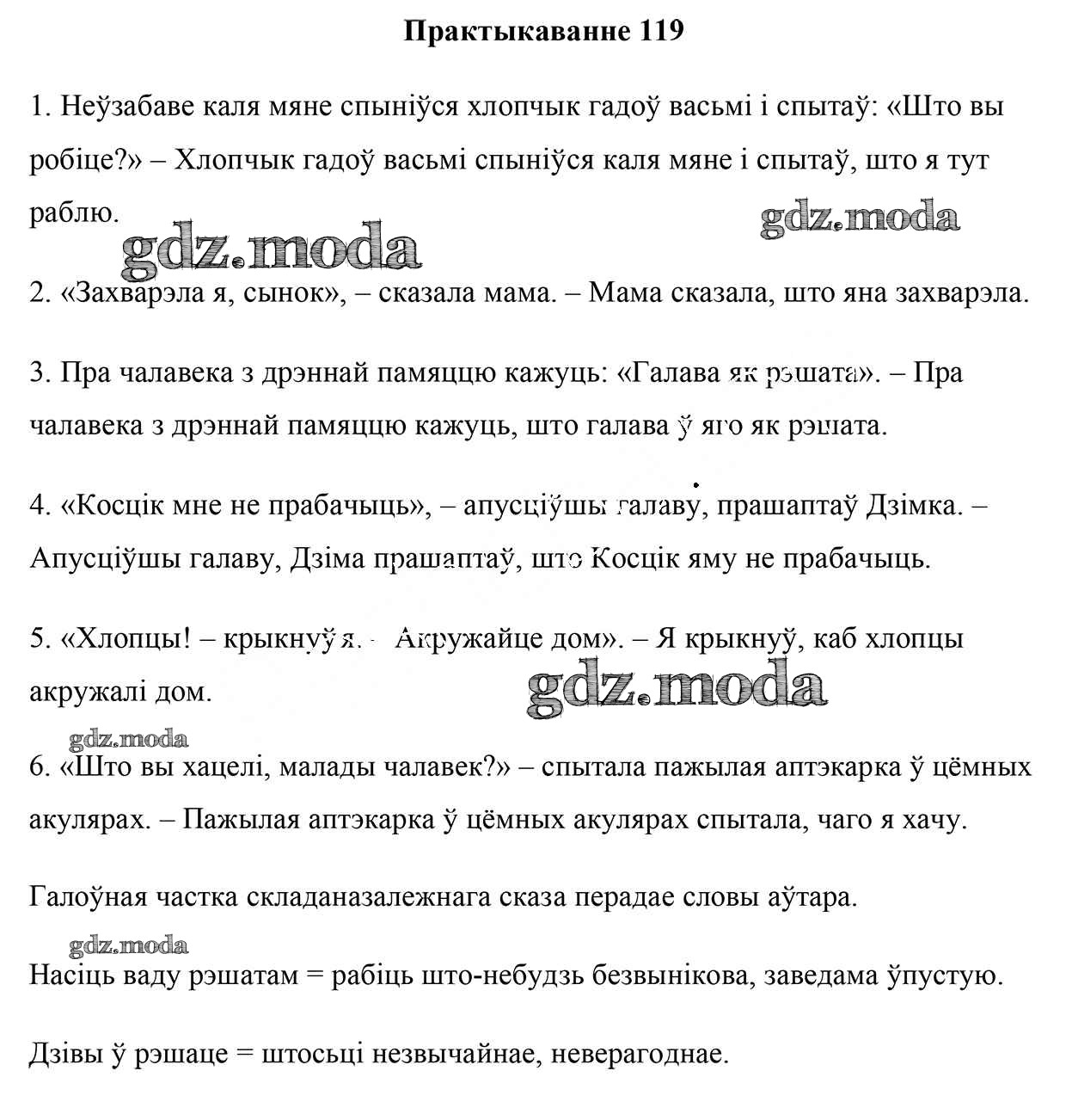 ГДЗ решение к заданию № 119 Белоруская мова 9 класс Валочка Г. М. Национальный институт образования 2019 ФГОС бесплатно на гдз.мода!