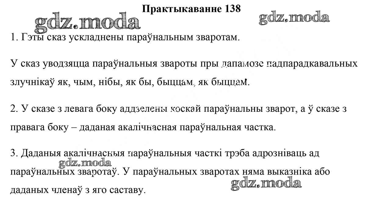 ГДЗ решение к заданию № 138 Белоруская мова 9 класс Валочка Г. М. Национальный институт образования 2019 ФГОС бесплатно на гдз.мода!