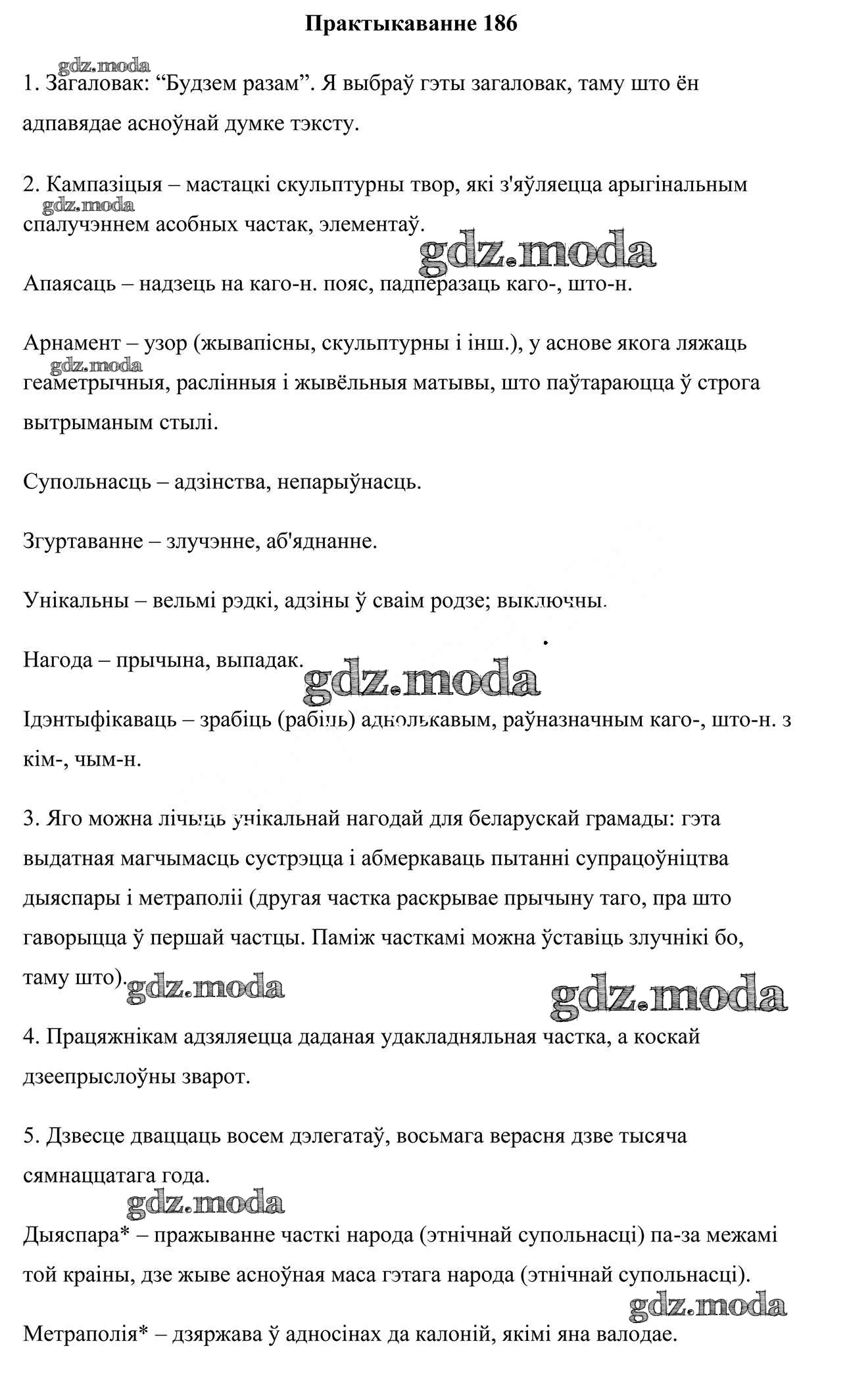ГДЗ решение к заданию № 186 Белоруская мова 9 класс Валочка Г. М. Национальный институт образования 2019 ФГОС бесплатно на гдз.мода!