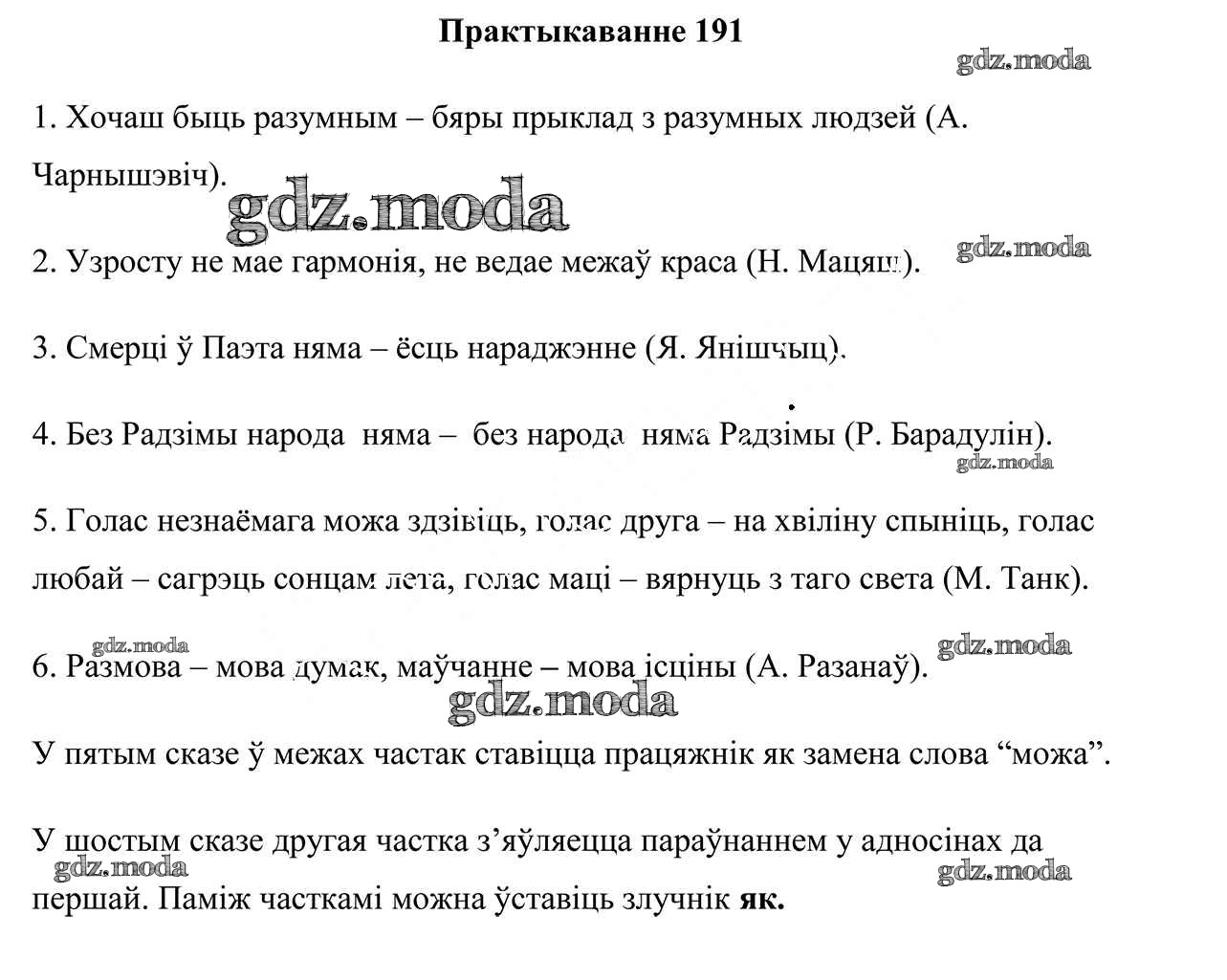 ГДЗ решение к заданию № 191 Белоруская мова 9 класс Валочка Г. М. Национальный институт образования 2019 ФГОС бесплатно на гдз.мода!