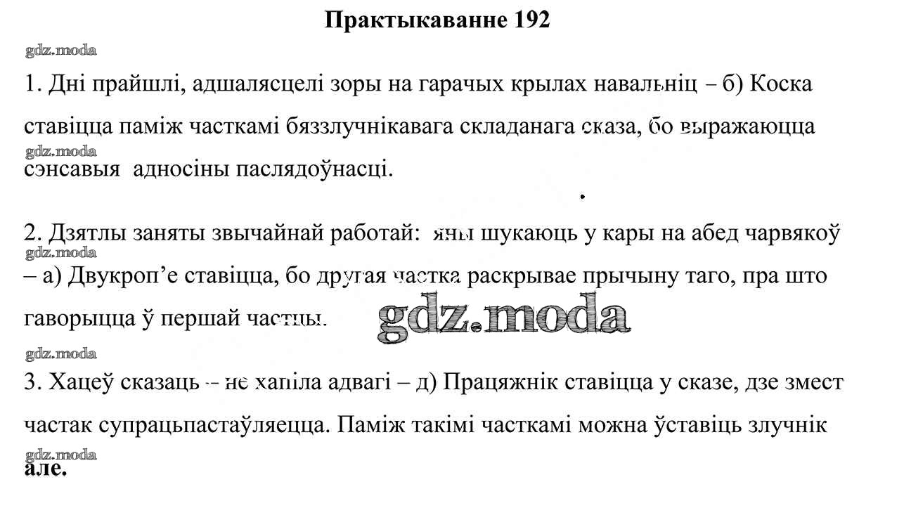 ГДЗ решение к заданию № 192 Белоруская мова 9 класс Валочка Г. М. Национальный институт образования 2019 ФГОС бесплатно на гдз.мода!