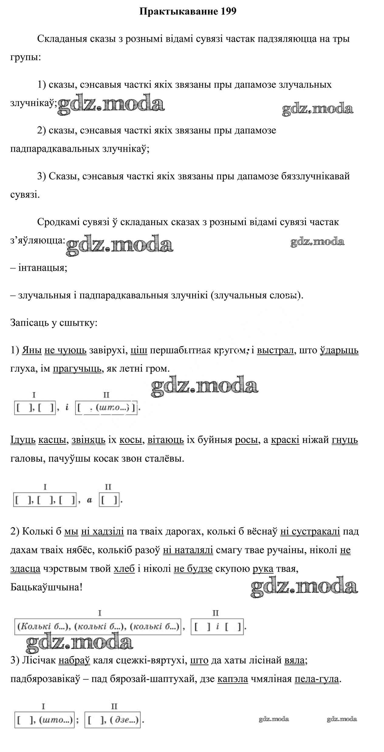 ГДЗ решение к заданию № 199 Белоруская мова 9 класс Валочка Г. М. Национальный институт образования 2019 ФГОС бесплатно на гдз.мода!
