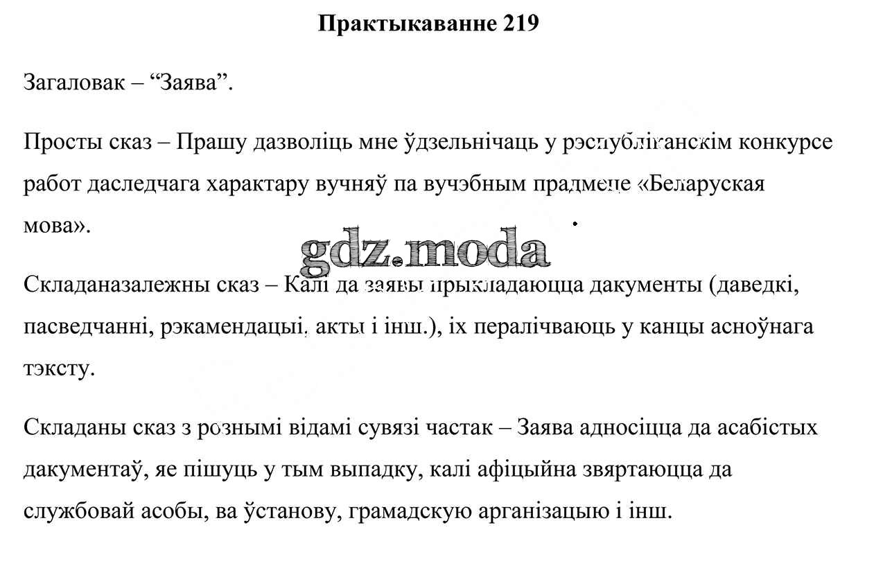 ГДЗ решение к заданию № 219 Белоруская мова 9 класс Валочка Г. М. Национальный институт образования 2019 ФГОС бесплатно на гдз.мода!