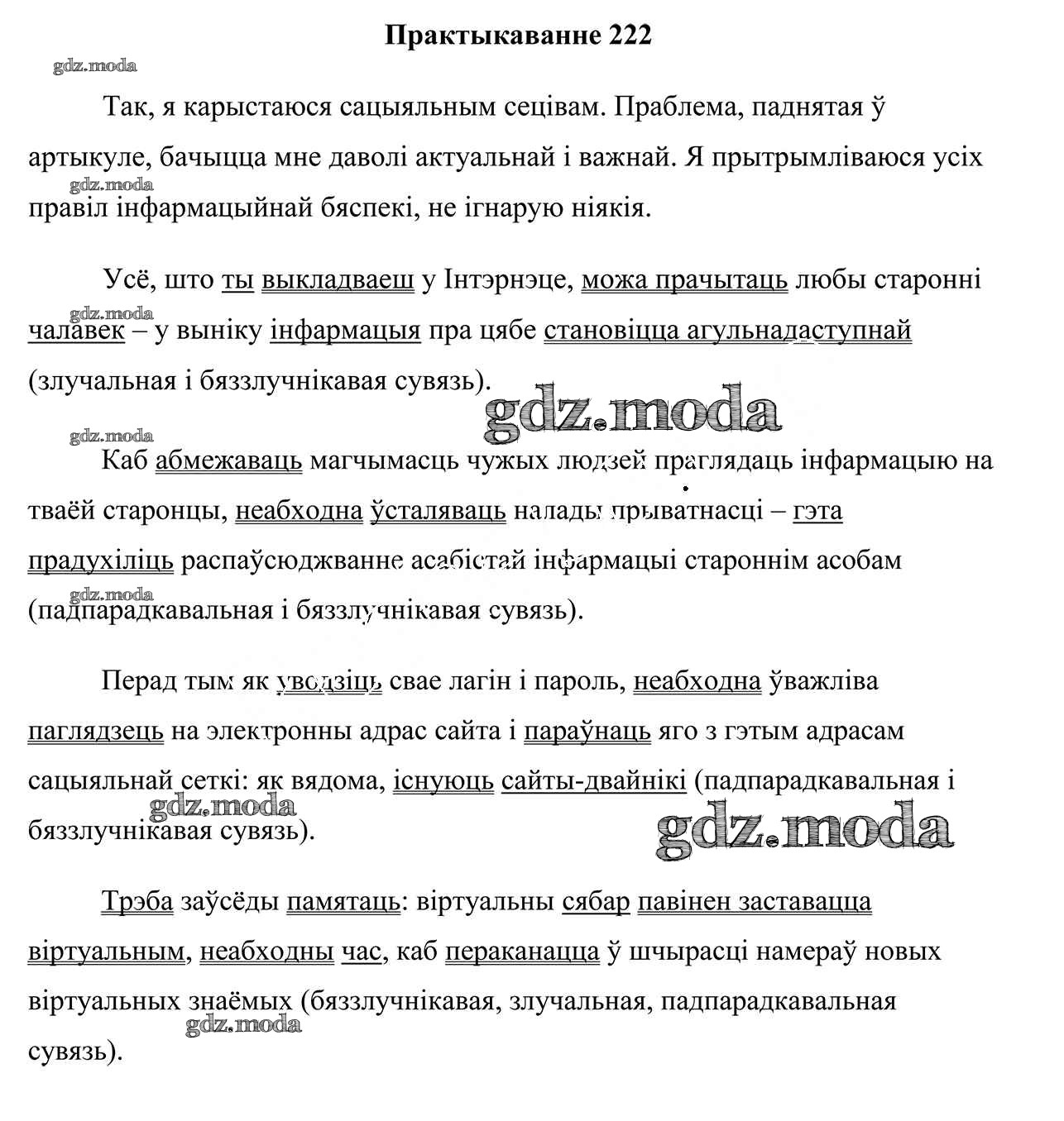 ГДЗ решение к заданию № 222 Белоруская мова 9 класс Валочка Г. М. Национальный институт образования 2019 ФГОС бесплатно на гдз.мода!