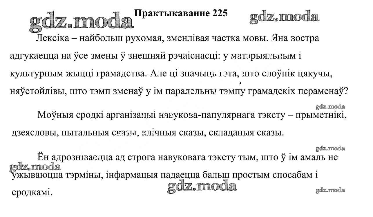 ГДЗ решение к заданию № 225 Белоруская мова 9 класс Валочка Г. М. Национальный институт образования 2019 ФГОС бесплатно на гдз.мода!