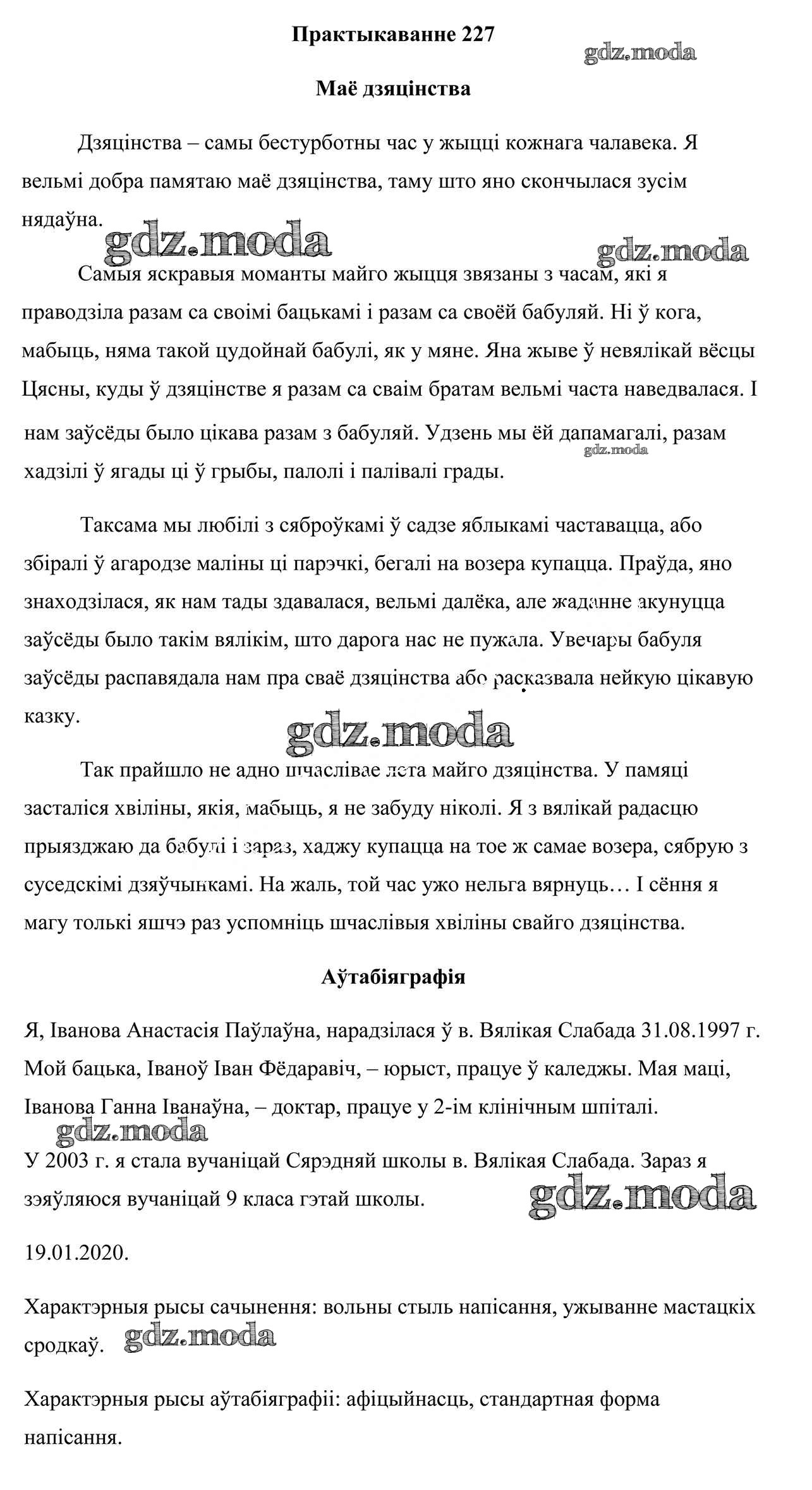 ГДЗ решение к заданию № 227 Белоруская мова 9 класс Валочка Г. М. Национальный институт образования 2019 ФГОС бесплатно на гдз.мода!