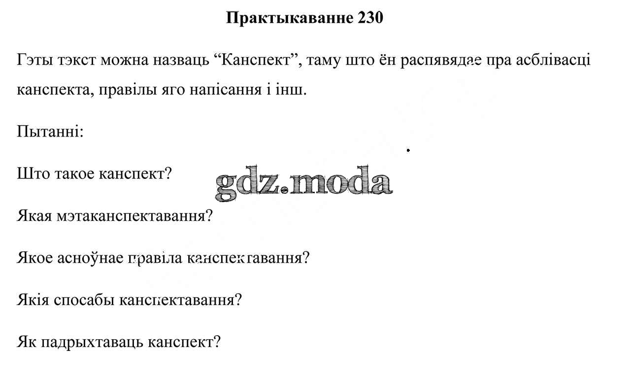 ГДЗ решение к заданию № 230 Белоруская мова 9 класс Валочка Г. М. Национальный институт образования 2019 ФГОС бесплатно на гдз.мода!