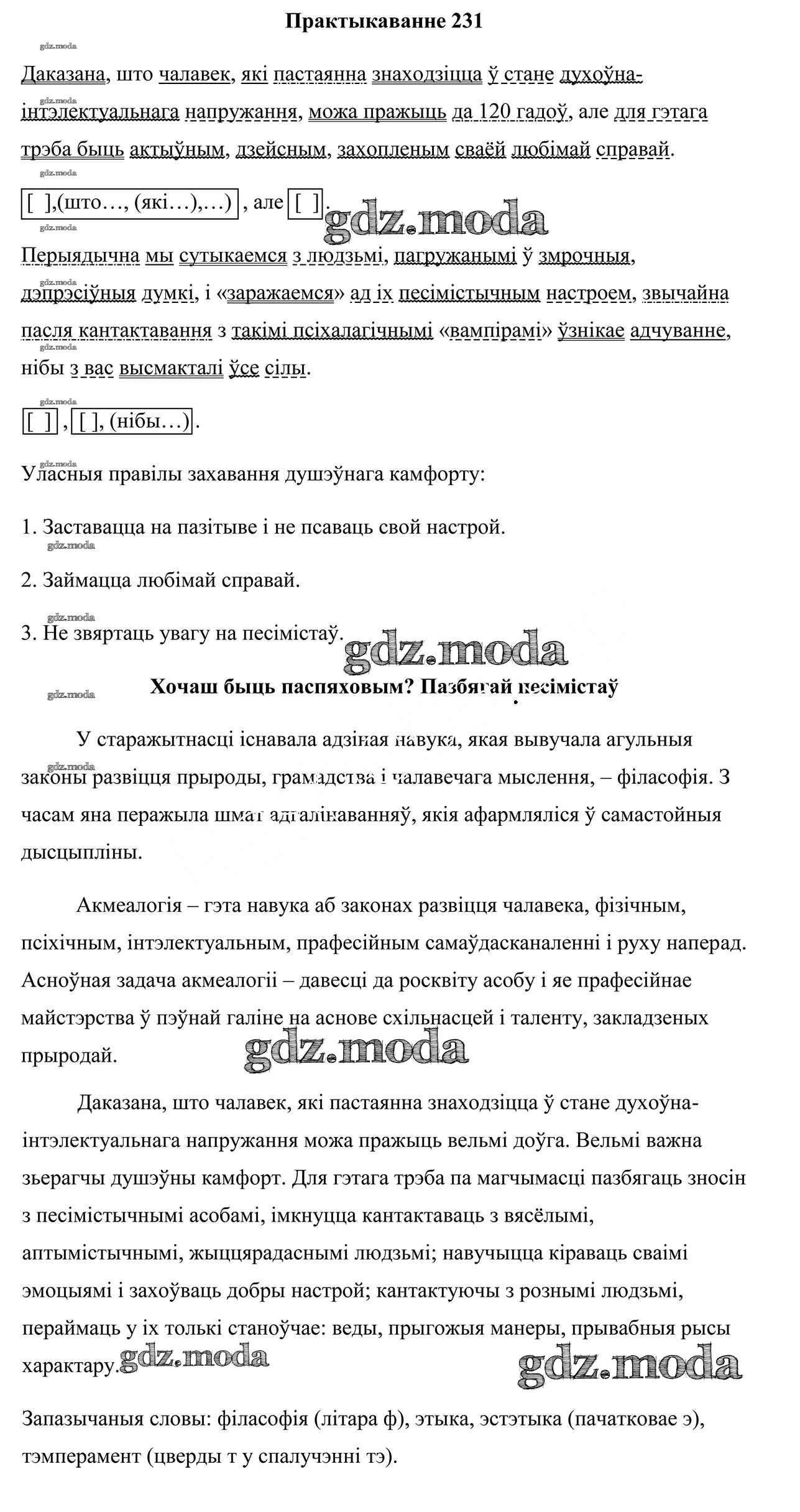 ГДЗ решение к заданию № 231 Белоруская мова 9 класс Валочка Г. М. Национальный институт образования 2019 ФГОС бесплатно на гдз.мода!