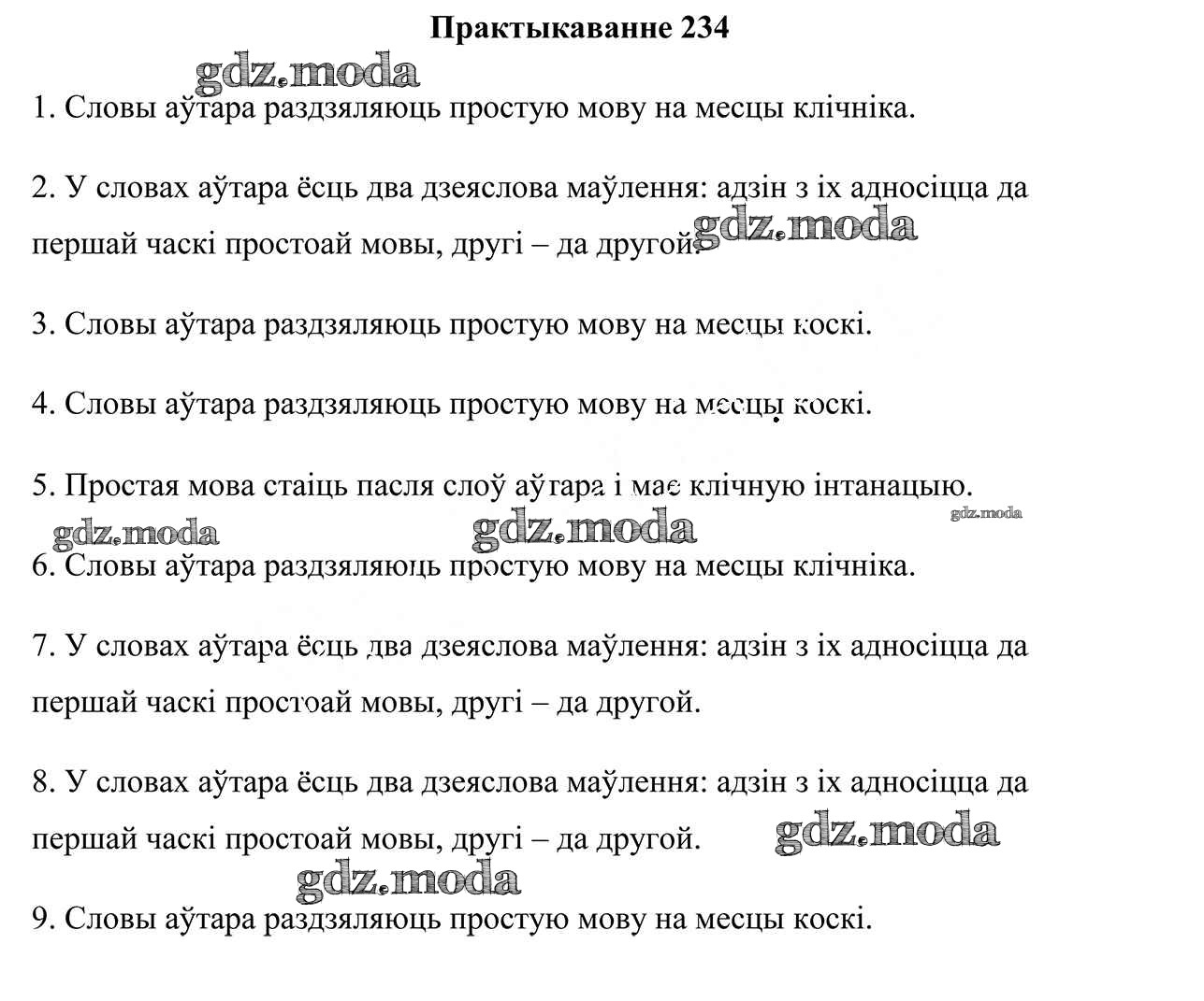 ГДЗ решение к заданию № 234 Белоруская мова 9 класс Валочка Г. М. Национальный институт образования 2019 ФГОС бесплатно на гдз.мода!