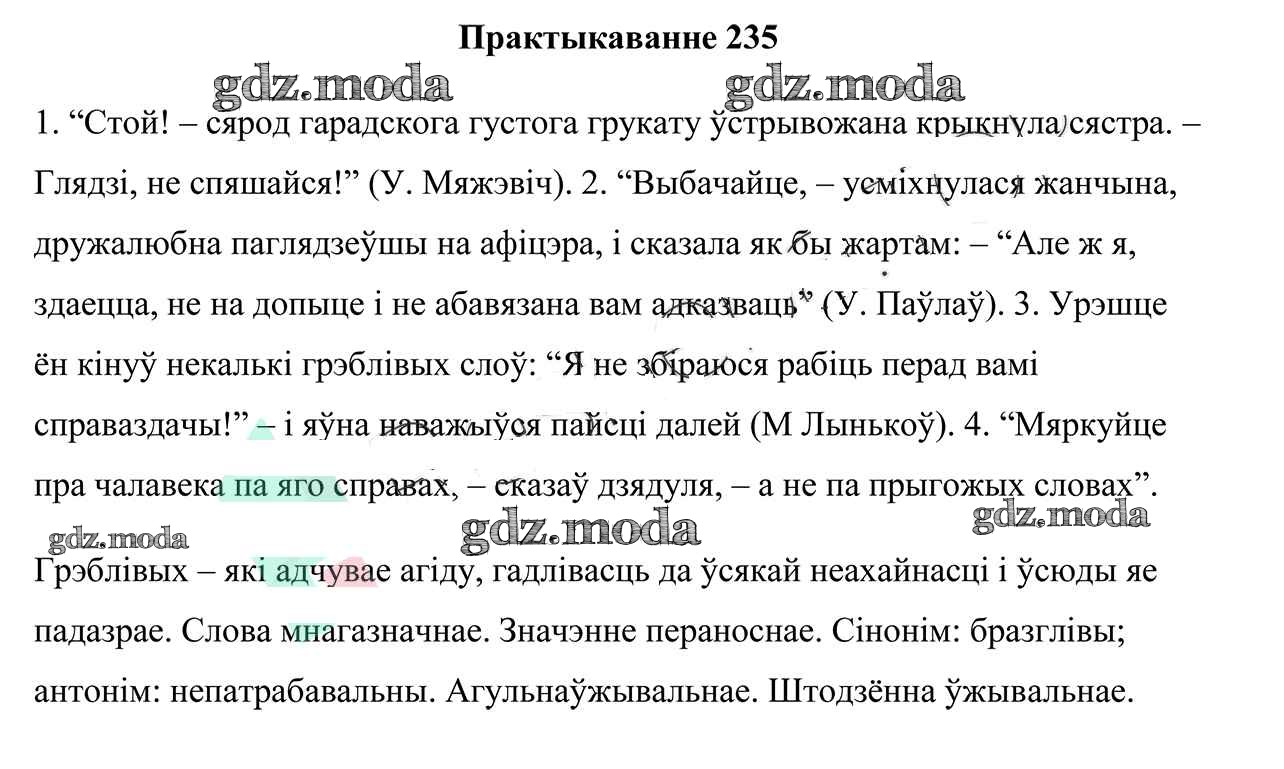ГДЗ решение к заданию № 235 Белоруская мова 9 класс Валочка Г. М. Национальный институт образования 2019 ФГОС бесплатно на гдз.мода!