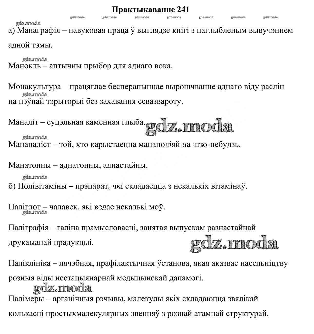ГДЗ решение к заданию № 241 Белоруская мова 9 класс Валочка Г. М. Национальный институт образования 2019 ФГОС бесплатно на гдз.мода!