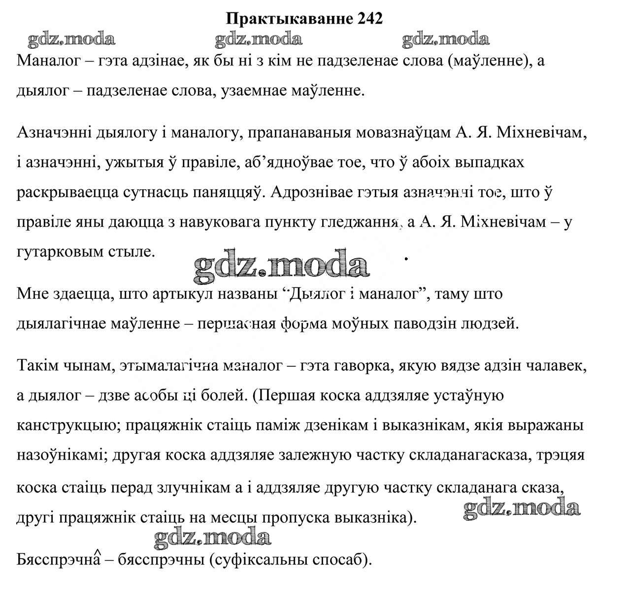 ГДЗ решение к заданию № 242 Белоруская мова 9 класс Валочка Г. М. Национальный институт образования 2019 ФГОС бесплатно на гдз.мода!