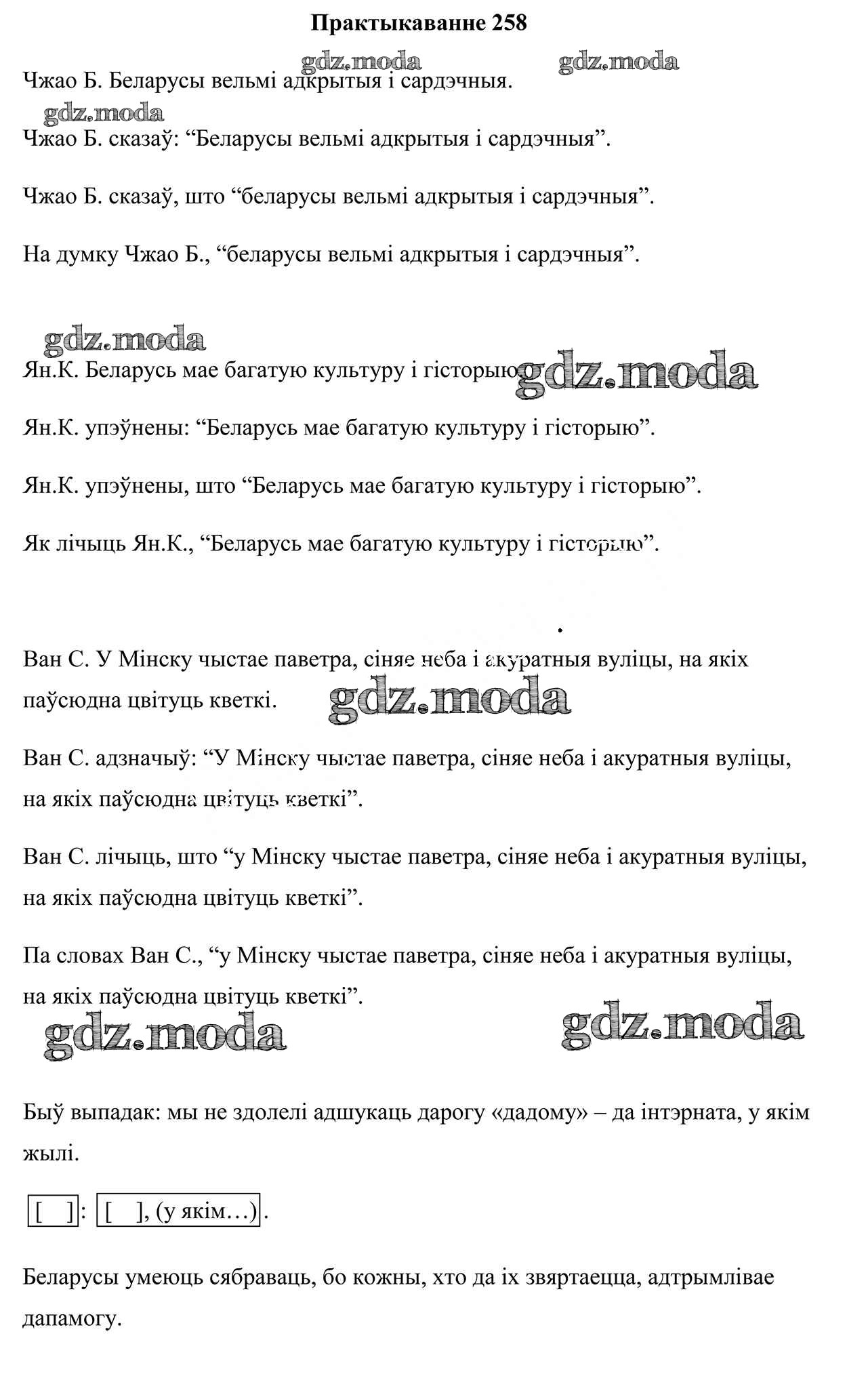 ГДЗ решение к заданию № 258 Белоруская мова 9 класс Валочка Г. М. Национальный институт образования 2019 ФГОС бесплатно на гдз.мода!