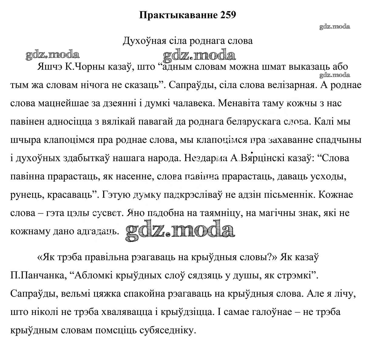 ГДЗ решение к заданию № 259 Белоруская мова 9 класс Валочка Г. М. Национальный институт образования 2019 ФГОС бесплатно на гдз.мода!