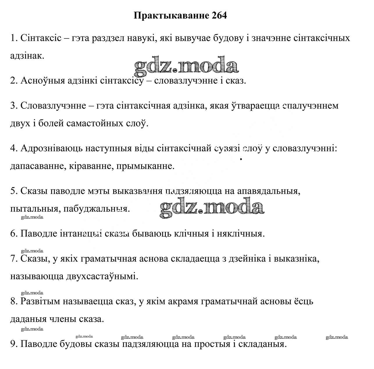 ГДЗ решение к заданию № 264 Белоруская мова 9 класс Валочка Г. М. Национальный институт образования 2019 ФГОС бесплатно на гдз.мода!