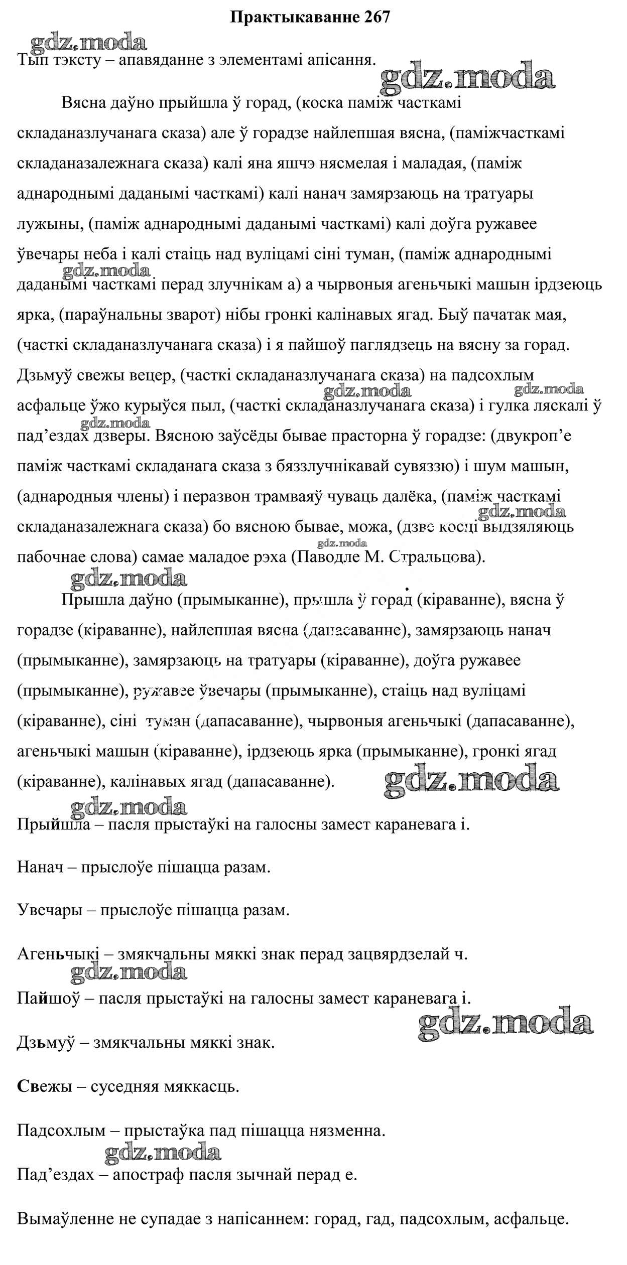 ГДЗ решение к заданию № 267 Белоруская мова 9 класс Валочка Г. М. Национальный институт образования 2019 ФГОС бесплатно на гдз.мода!