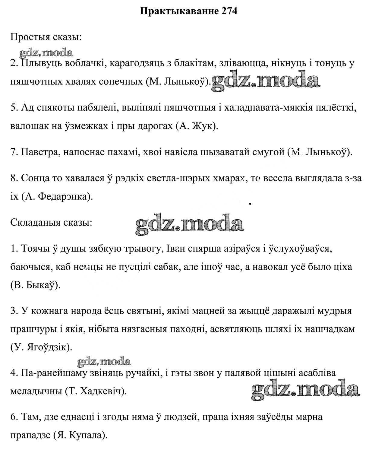 ГДЗ решение к заданию № 274 Белоруская мова 9 класс Валочка Г. М. Национальный институт образования 2019 ФГОС бесплатно на гдз.мода!