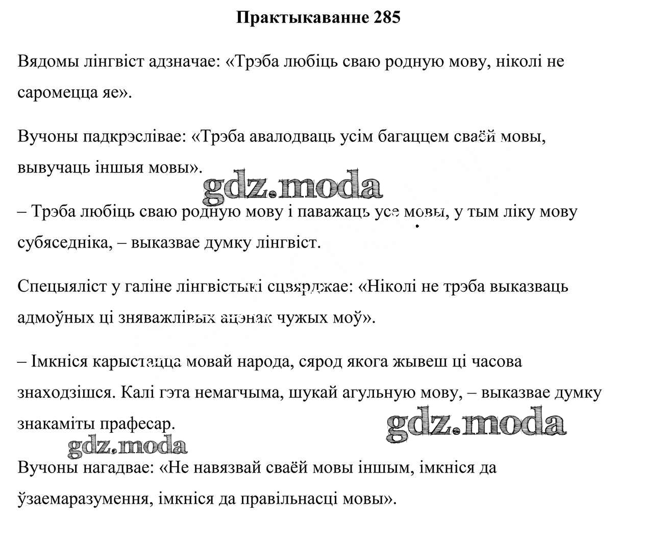 ГДЗ решение к заданию № 285 Белоруская мова 9 класс Валочка Г. М. Национальный институт образования 2019 ФГОС бесплатно на гдз.мода!