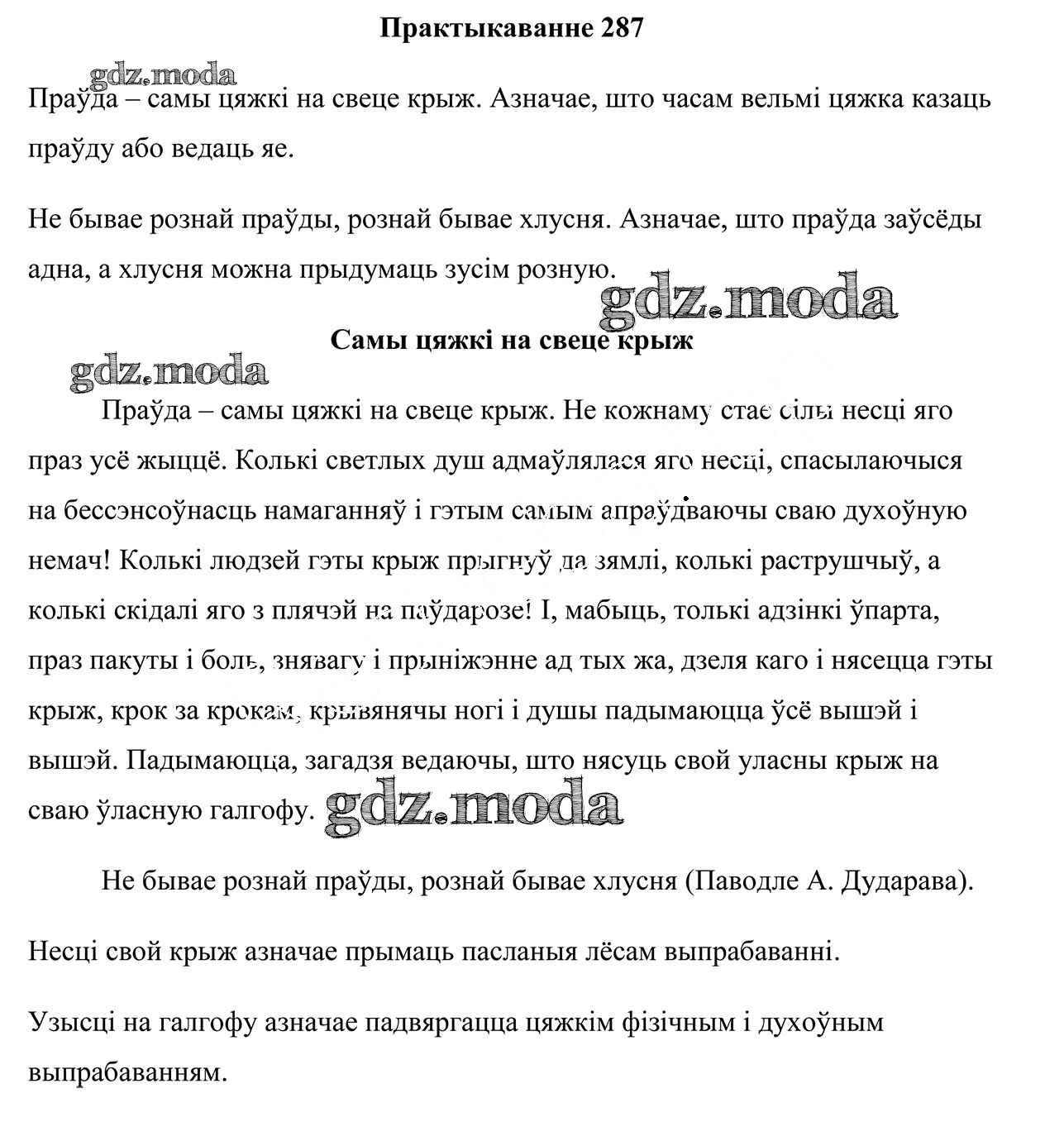 ГДЗ решение к заданию № 287 Белоруская мова 9 класс Валочка Г. М. Национальный институт образования 2019 ФГОС бесплатно на гдз.мода!