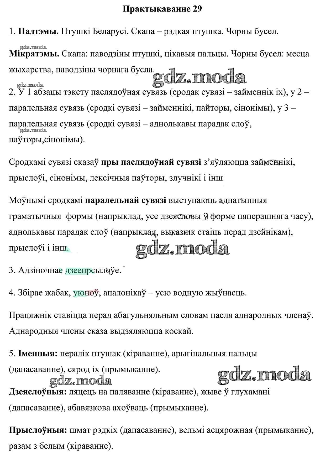 ГДЗ решение к заданию № 29 Белоруская мова 9 класс Валочка Г. М. Национальный институт образования 2019 ФГОС бесплатно на гдз.мода!