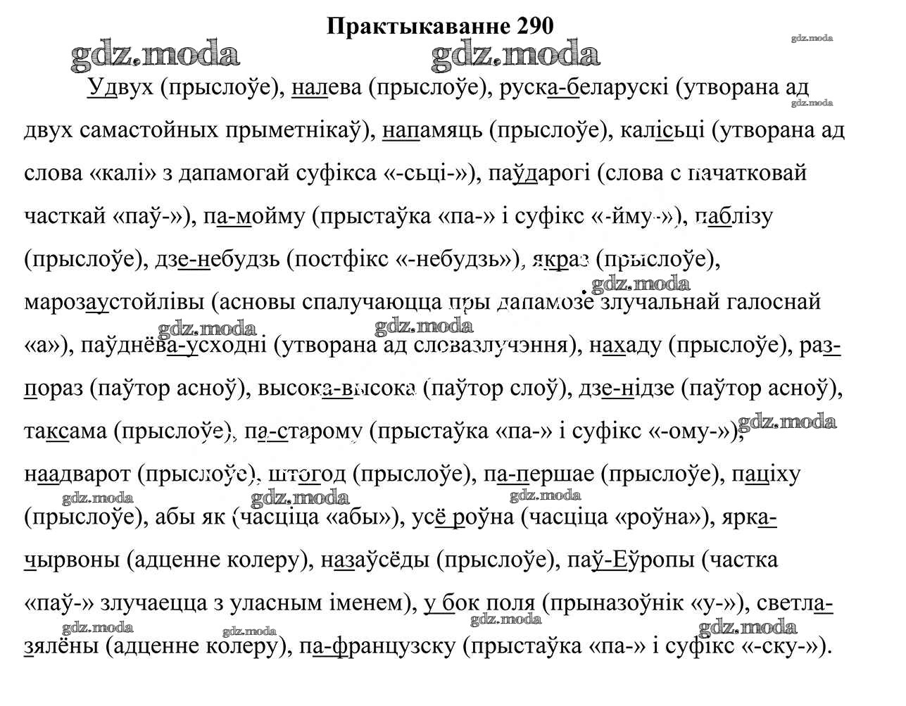 ГДЗ решение к заданию № 290 Белоруская мова 9 класс Валочка Г. М. Национальный институт образования 2019 ФГОС бесплатно на гдз.мода!