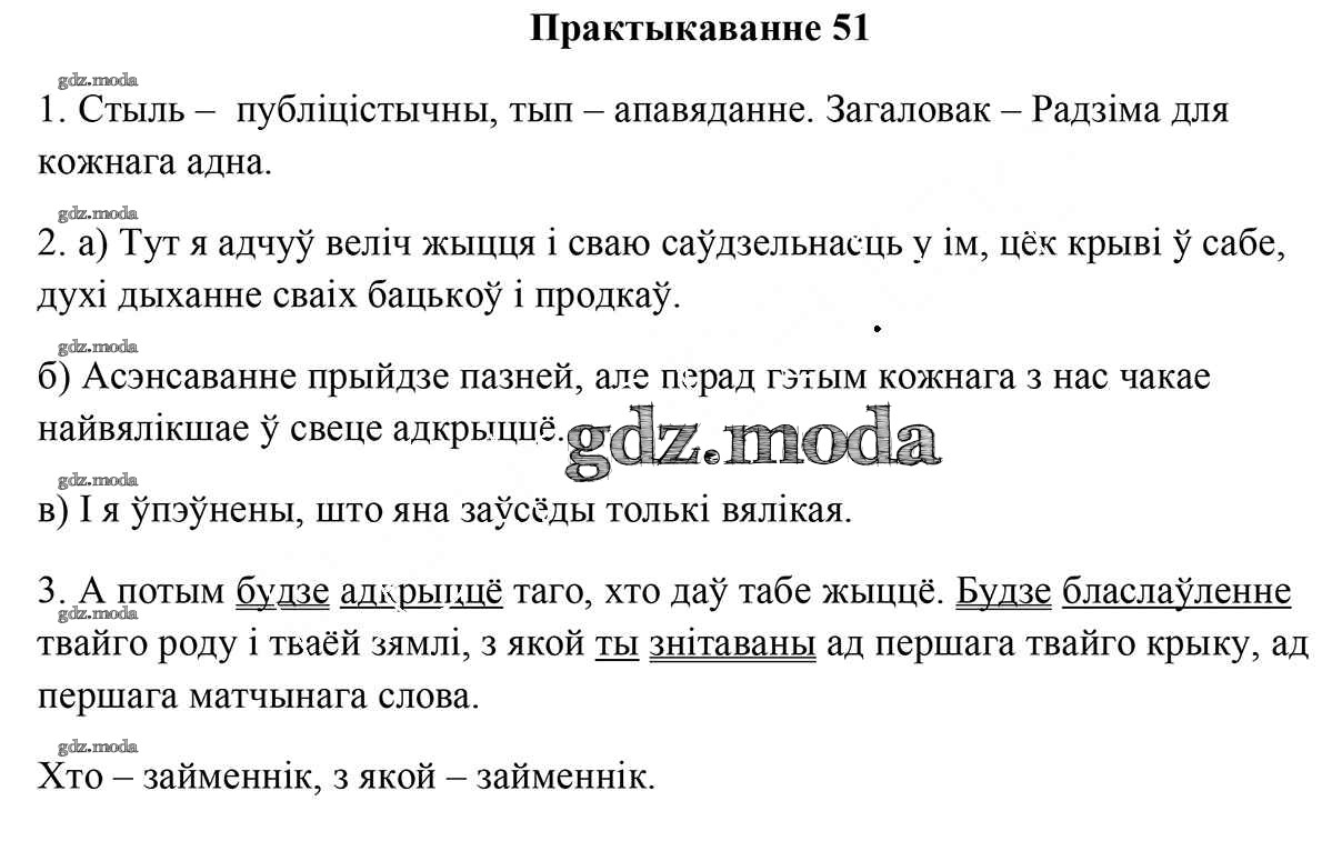 ГДЗ решение к заданию № 51 Белоруская мова 9 класс Валочка Г. М. Национальный институт образования 2019 ФГОС бесплатно на гдз.мода!