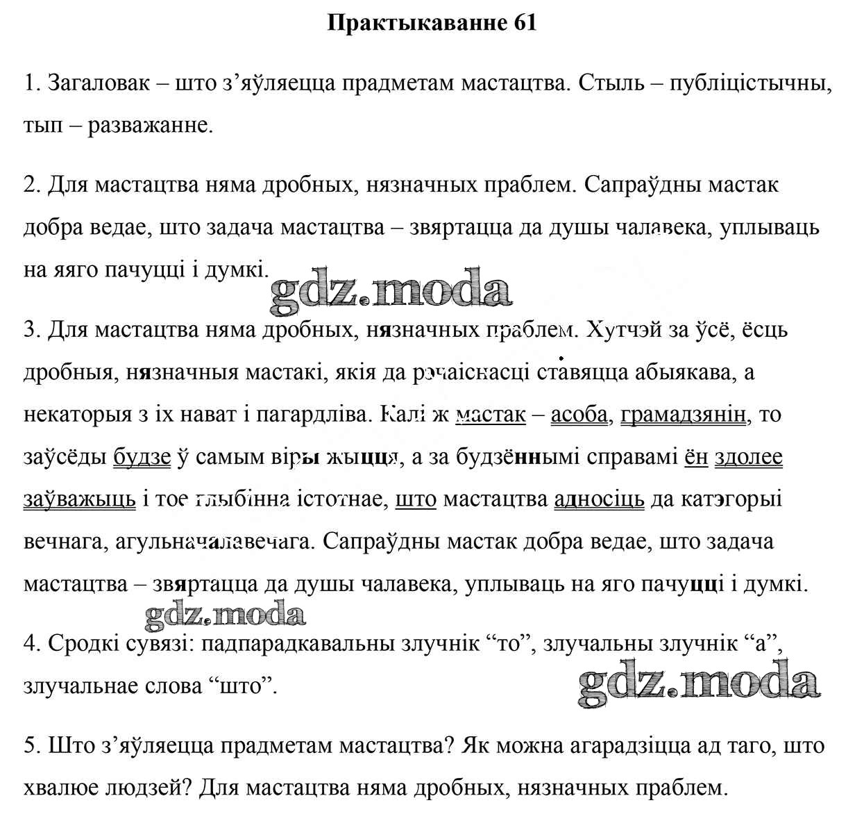 ГДЗ решение к заданию № 61 Белоруская мова 9 класс Валочка Г. М. Национальный институт образования 2019 ФГОС бесплатно на гдз.мода!
