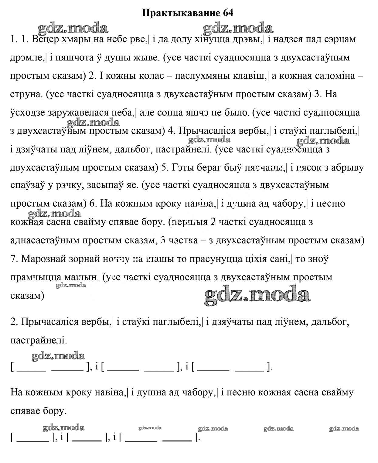ГДЗ решение к заданию № 64 Белоруская мова 9 класс Валочка Г. М. Национальный институт образования 2019 ФГОС бесплатно на гдз.мода!